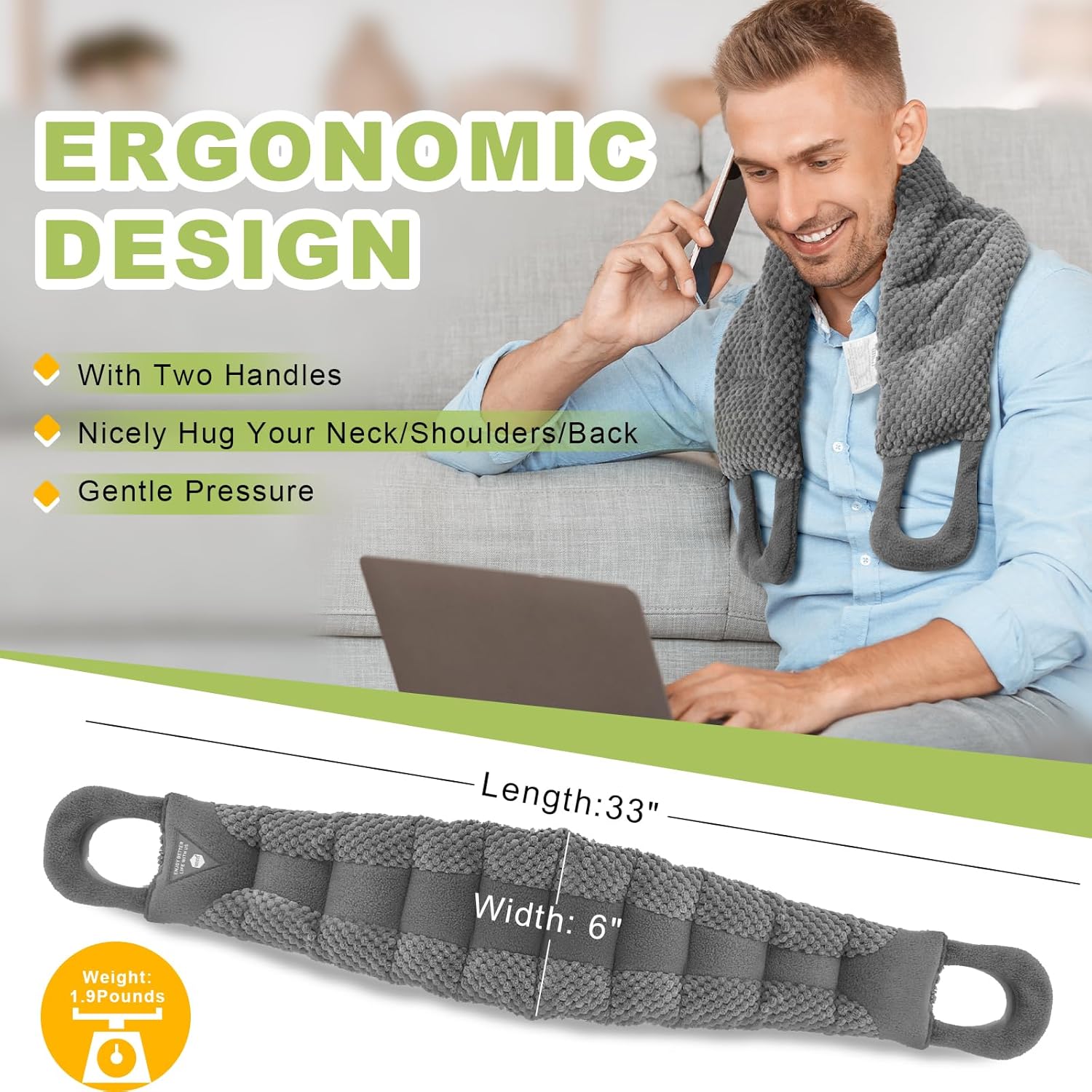 UNCN Long Wide Heating pad for Neck and Shoulders Back 33 * 5.9" microwavable Large Moist Heat Pack Warm hot Compress Neck wrap Weighted Bag Massage Reusable Herbal Nature Calming Portable 1.95Pounds