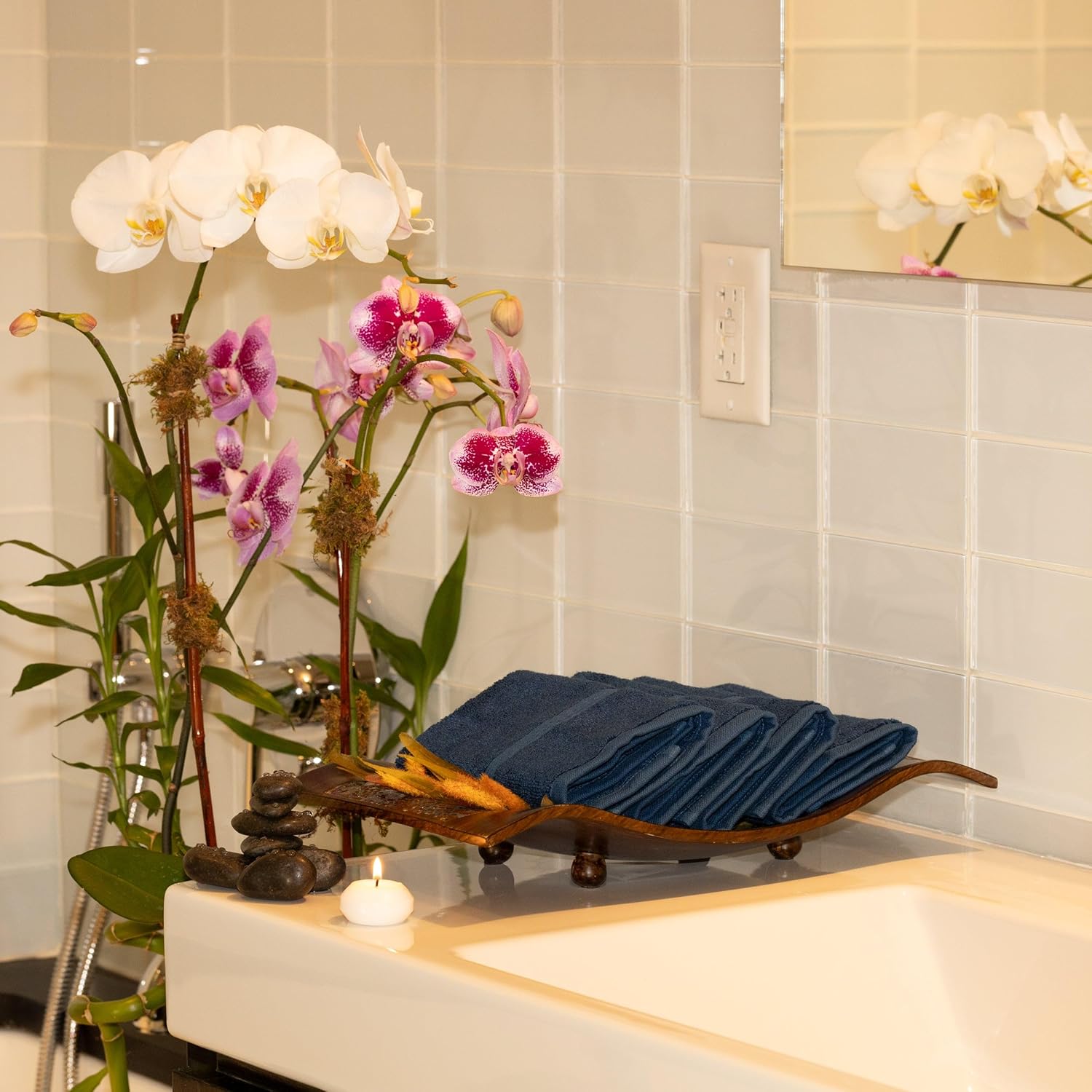 Mosobam Luxury Turkish Towels Set of 12 Washcloths 13X13 Navy Blue 700 GSM Bamboo Viscose & Aegean Turkish Combed Cotton