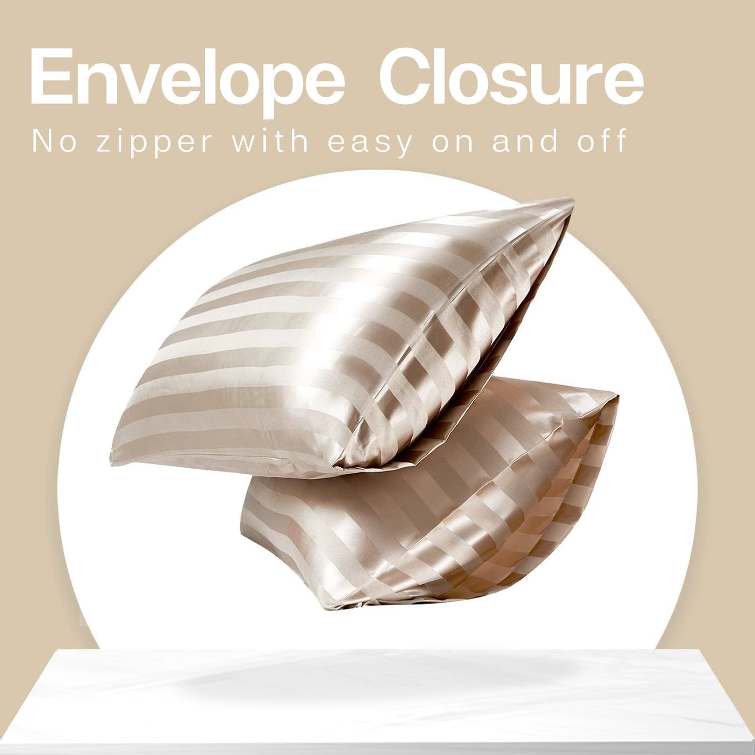 MR&HM Satin Pillowcase for Hair and Skin, Silk Satin Pillowcase 2 Pack, Standard Size Pillow Cases Set of 2, Silky Pillow Cover with Envelope Closure (20x26, Champagne Striped)