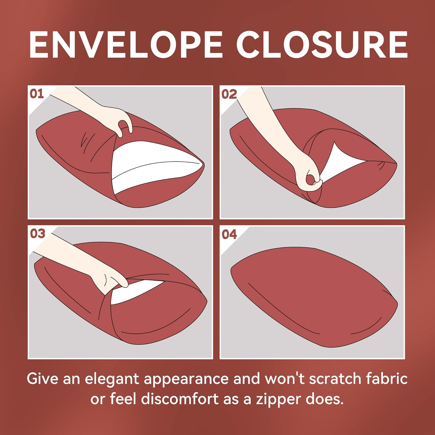 - ENVELOPE CLOSURE: Give an elegant appearance and won't scratch fabric or feel discomfort like zipper does. The silky pillow cover holds your pillow securely in place while you rest. Also, easy to remove for washing and put on