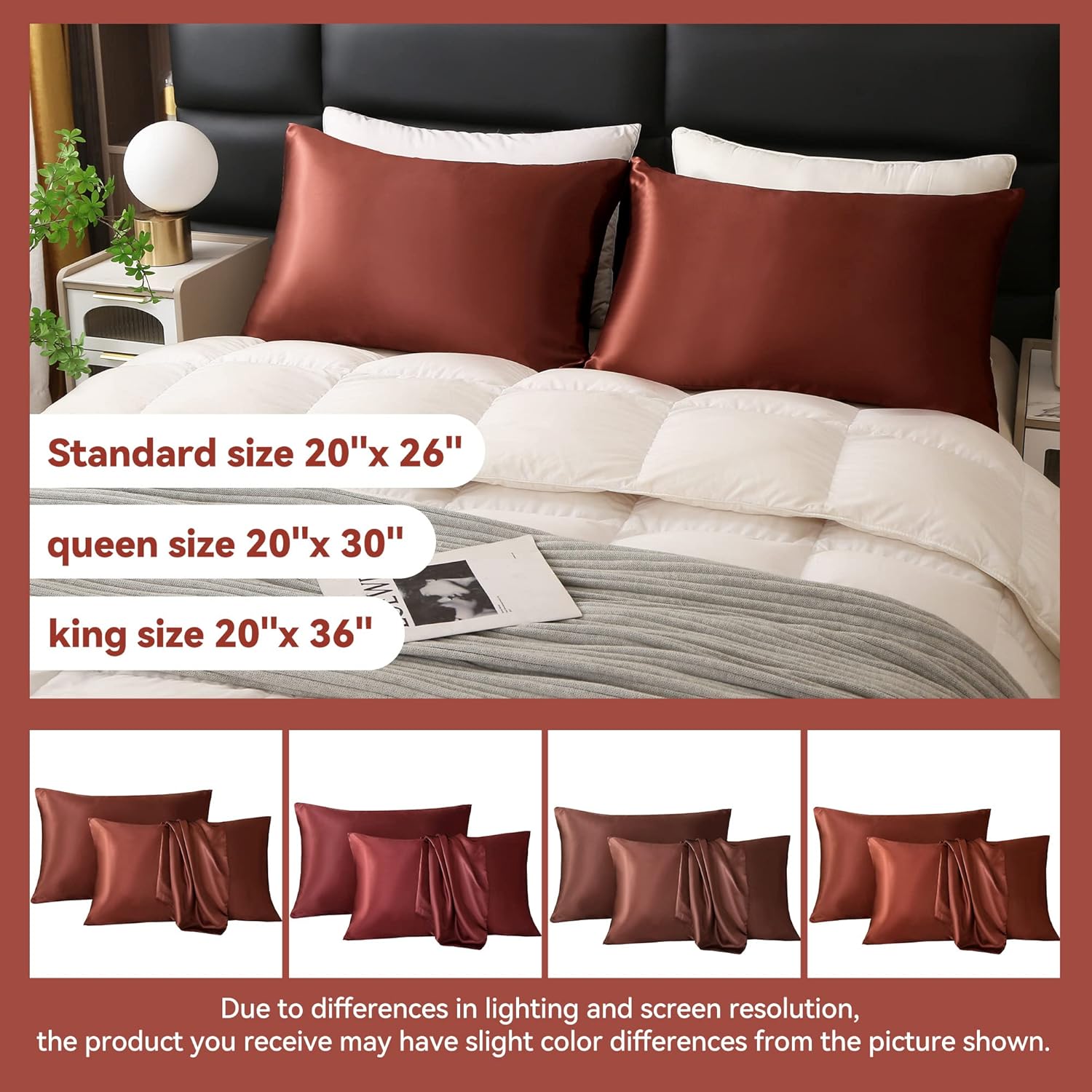 Tyfitb Satin Pillowcase for Hair and Skin, Coffee Pillowcases Set of 2, Cooling Pillow Cases Standard Size(20×26 Inches), Soft Luxury Satin Pillowcase with Envelope Closure