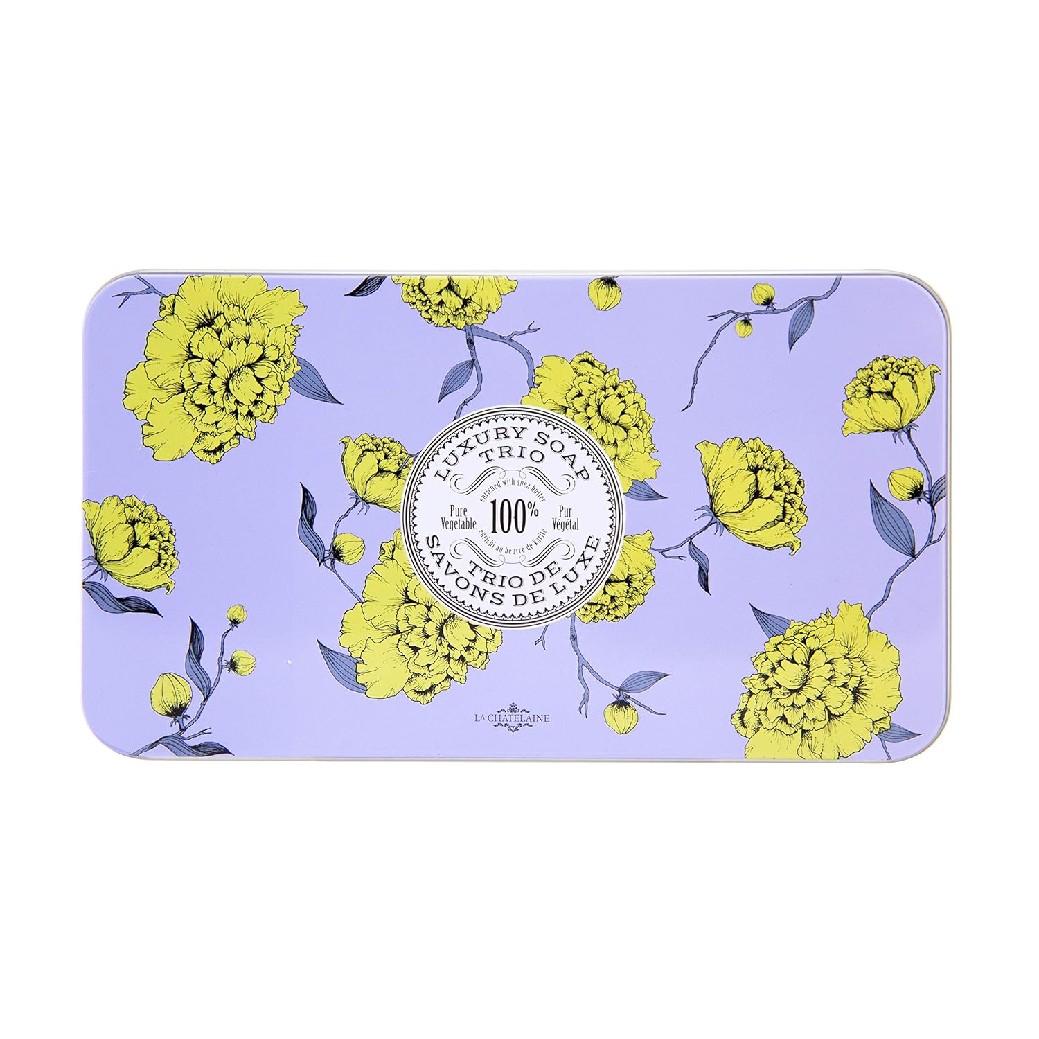 La Chatelaine Luxury Bar Soap Trio Gift Set Tin | Made in France | Natural and Organic | Shea Butter Formula | 3 x 7 oz / 200g - Lavender Soap Trio (Lavender, Lychee Bilberry, Lemon Verbena)