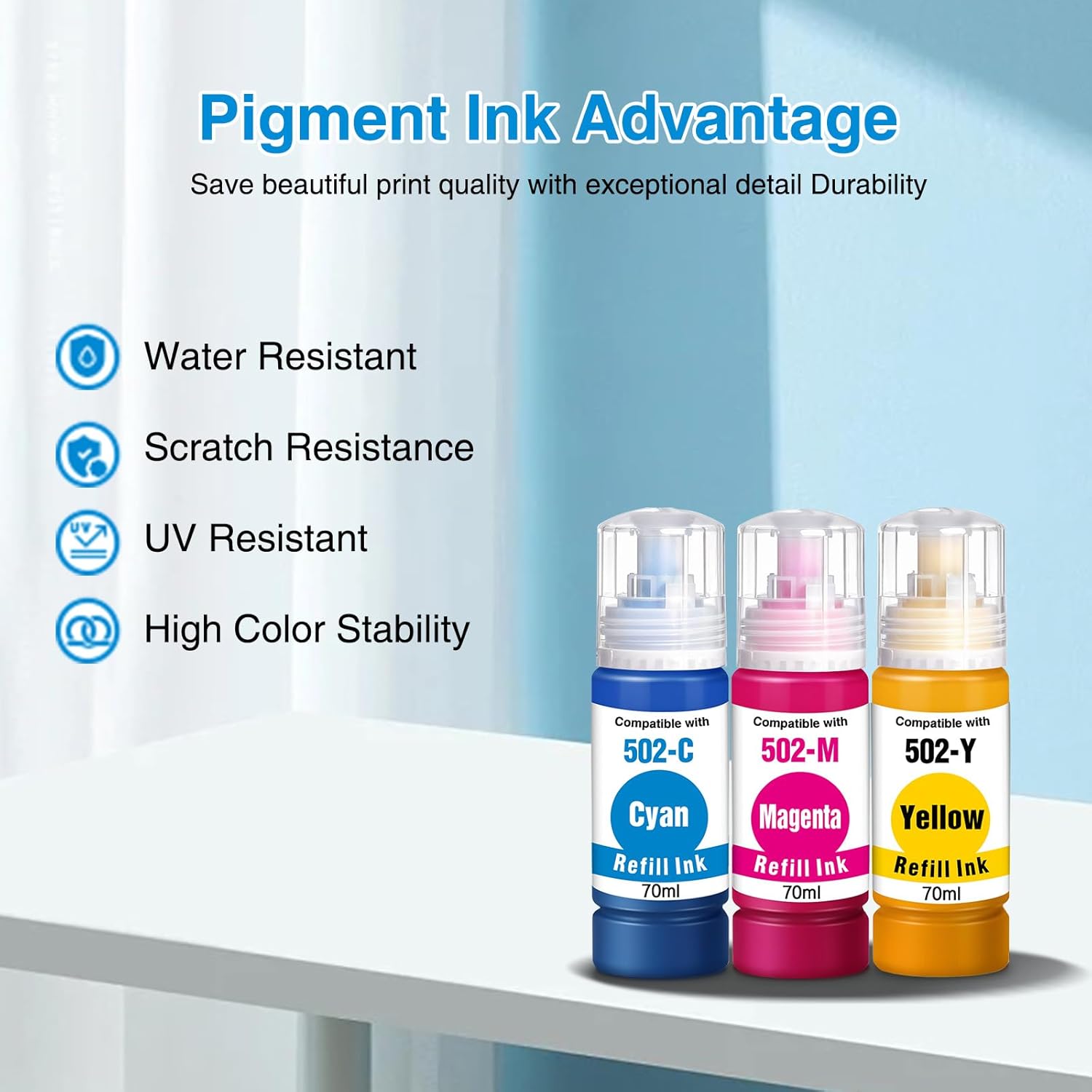 - Replacement for 502 Color refill ink bottle, No cloging, special designed bottle mouth, make it easy to add ink(you don't have to squeeze the bottle when adding ink)