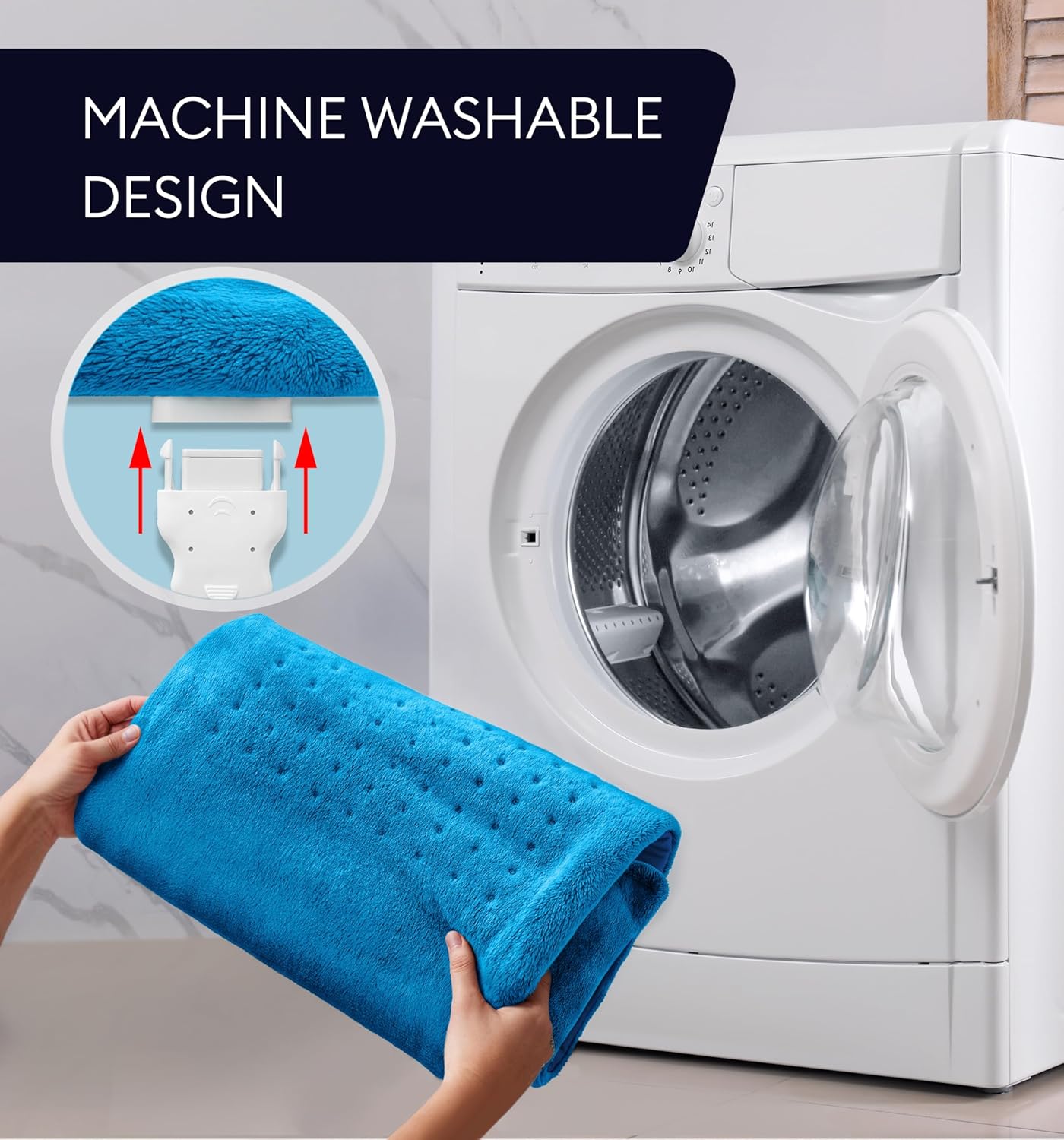 GENIANI Electric Throw - XL Heating Pad for Back Pain & Menstrual Pain Relief, Auto Shut Off, Machine Washable, Moist Heat Pad for Neck and Shoulder, Cramps Relief, 12'‘×24’’ (Aqua Blue)