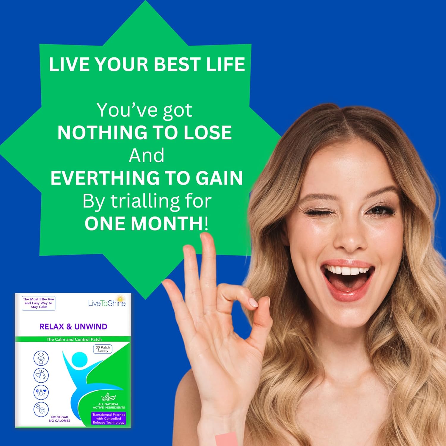 Live To Shine Relax & Unwind Patches | 30 Premium USA-Made Stress Relief Patches |Infused with Valerian, Humulus Lupulus & Calming Passionflower | Natural Way to Unwind, Decompress and ReGroup