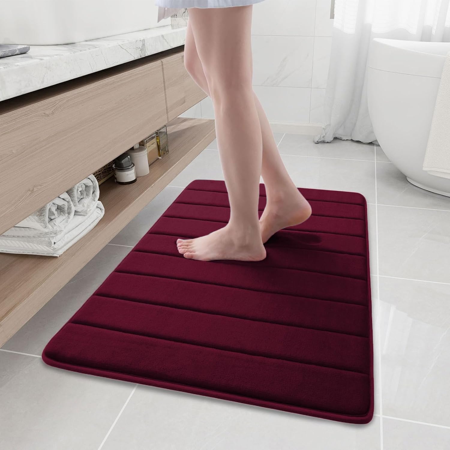 Buganda Memory Foam Bath Mat, 35.4" x 24", Ultra Soft and Non-Slip Bathroom Rugs, Water Absorbent and Machine Washable Bath Rug Runner for Bathroom, Shower, and Tub, Burgundy
