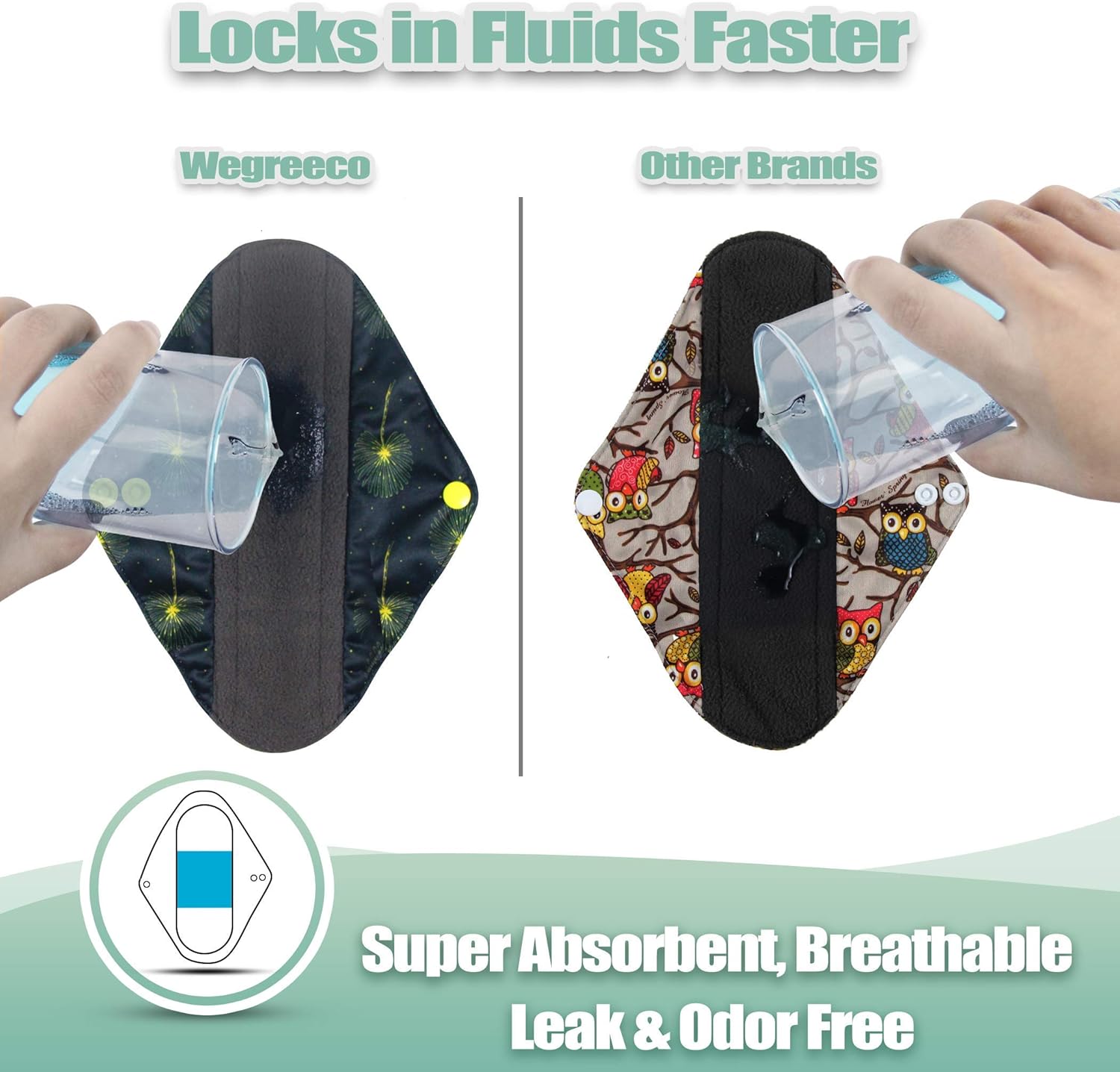 wegreeco Reusable Menstrual Pads - Reusable Sanitary Pads | Reusable Panty Liners | Soft Cloth Menstrual Pads - 6 Pack with 1 Cloth Mini Wet Bag (Small, Dandelion)