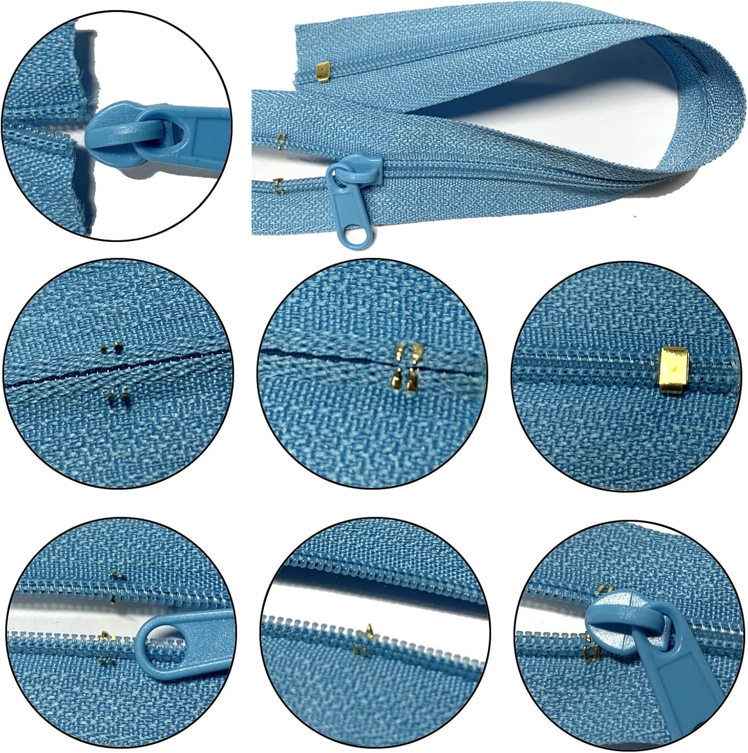 - Zippers for Sewing 12.5 Yard/14 meter zipper in 5 different colors (1x yellow, 1x white, 1x sky blue, 1x light purple, 1 x light pink), each 2.8 meters long. display as picture.