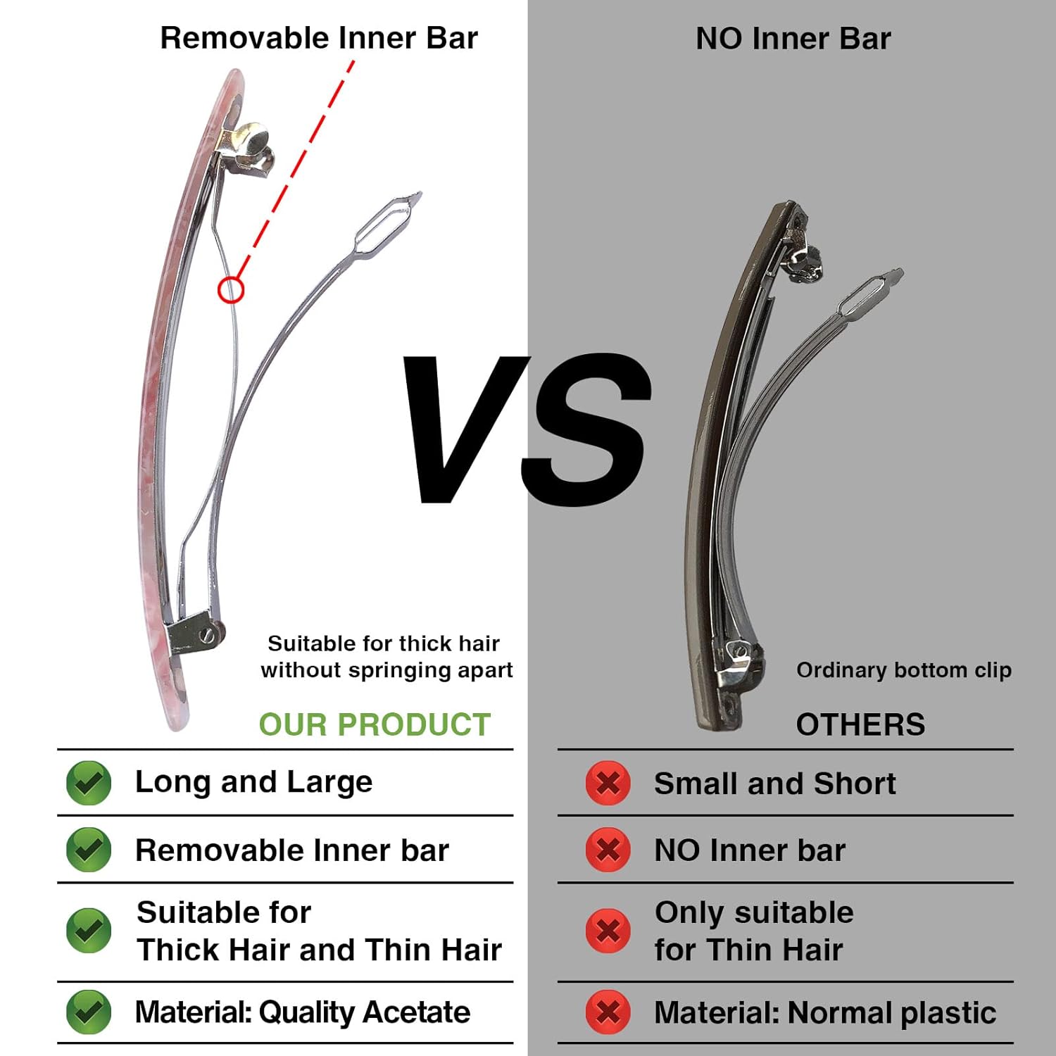 - FRENCH STYLE HAIR CLIPS FOR ELEGANT: These versatile 4'' long barrettes perfect for thick to fine hair,can be used to create many simple classic hair styles such as a low ponytail, French twist or half-up styles.A must-have hair accessory for women.