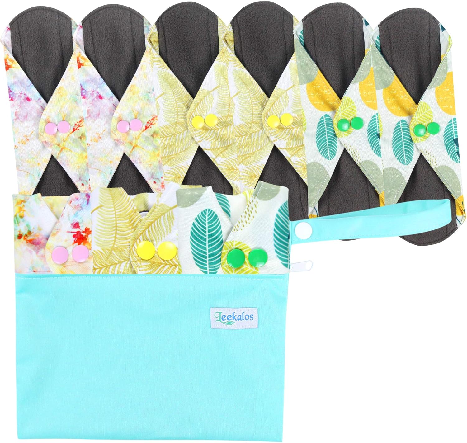 Leekalos Reusable Menstrual Pads - Bamboo Menstrual Cloth Pads | Light Incontinence Pads | Reusable Sanitary Pads - Pack of 6, 1 Cloth Mini Wet Bag