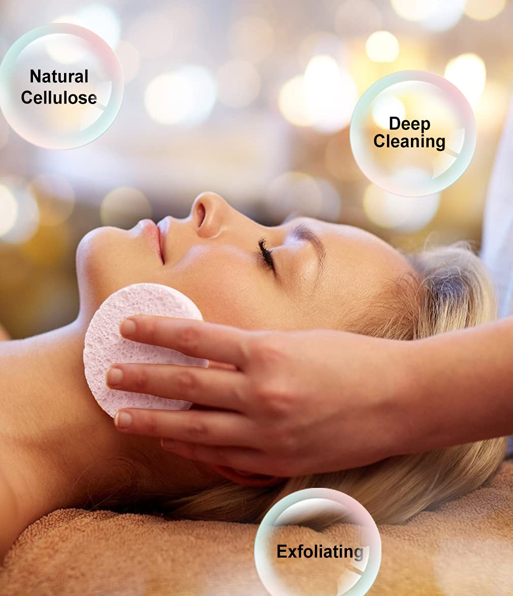 - 【Package & Size】: 50-count little round cellulose facial sponges. 2.8" dia. x 0.32" thick after hydrated