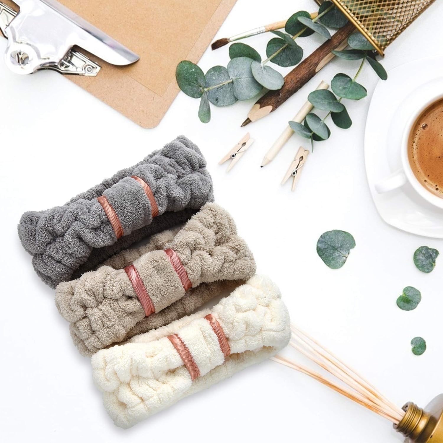 3 Pack Spa Headbands Microfiber SkinCare Face Wash Headband Facial Headband Makeup Towel Headbands for Women for Washing Face(White, Gray, Khaki)