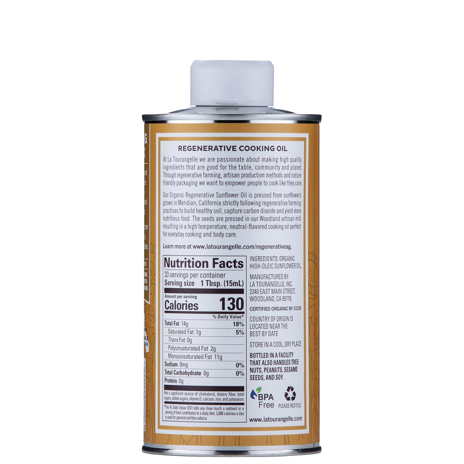 - NATURAL & SUSTAINABLE: La Tourangelle's Organic Regenerative Sunflower Oil is sourced from sustainable farming practices that provide nutrition back to soil and capture carbon emissions.