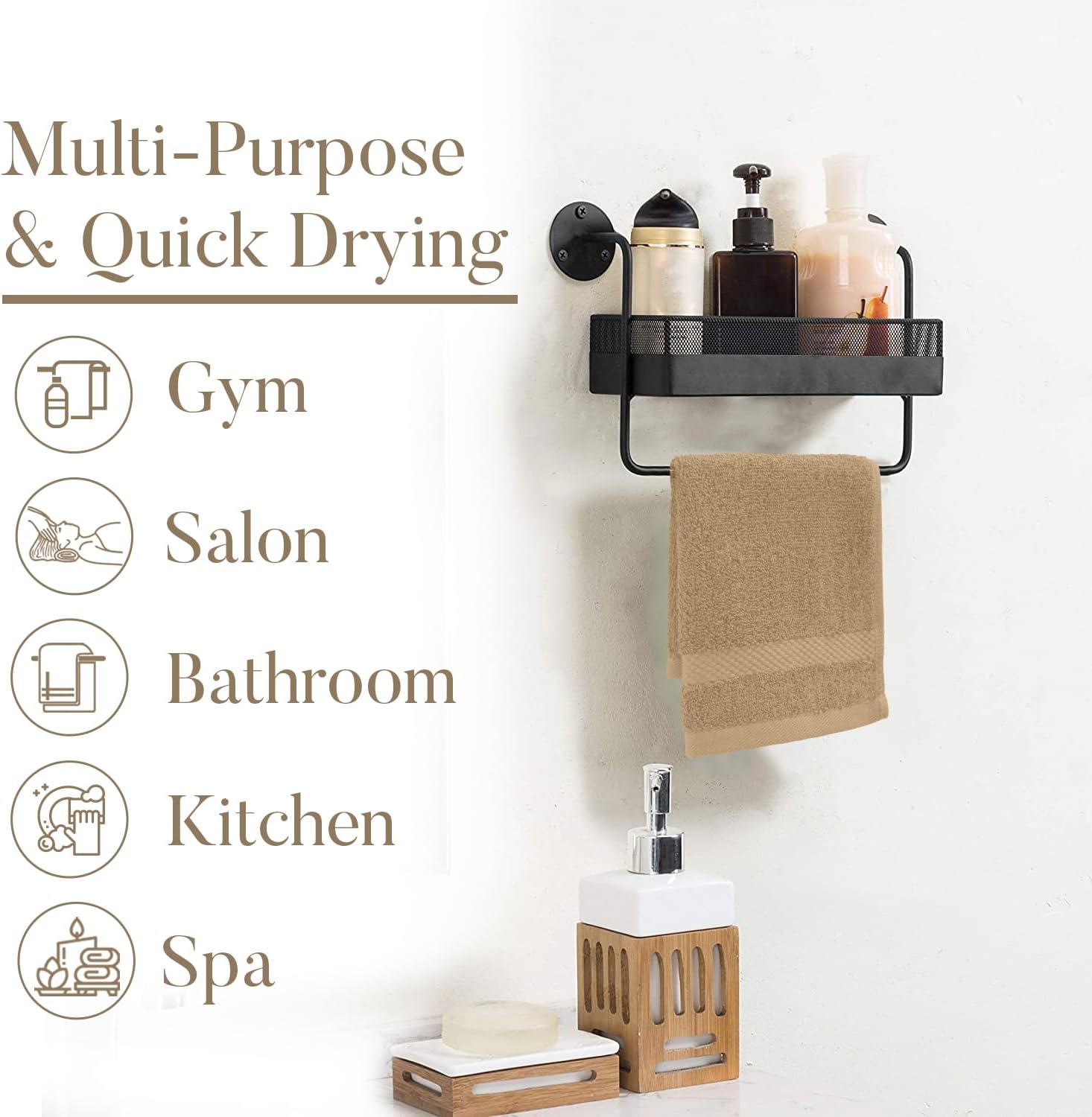 DAN RIVER 12-Pack Premium 100% Cotton TAN Face Towels – Reusable Face Towel Set, Soft & Absorbent wash Cloths for Body – Hand and Face Towels, 550 GSM (12x12 in)