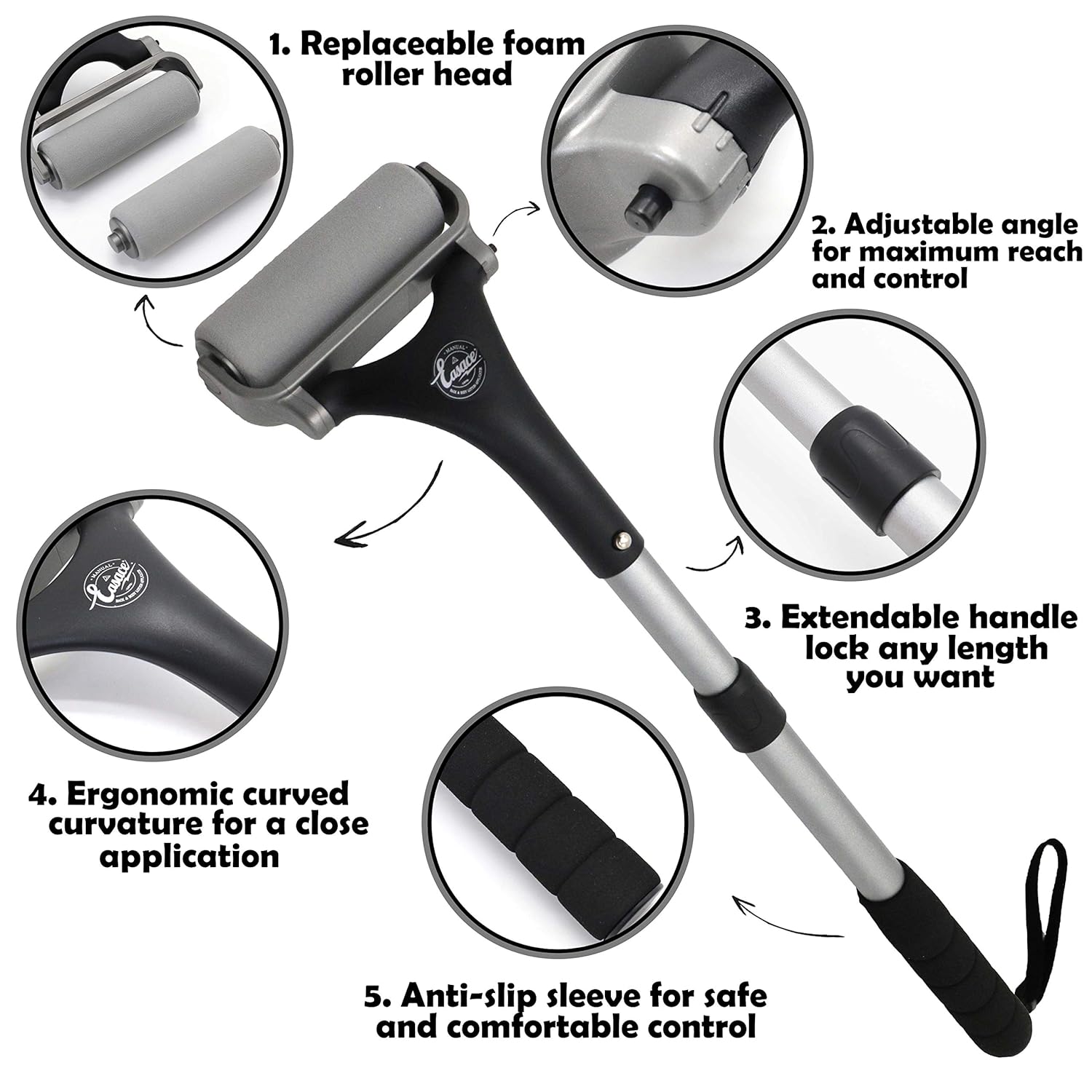 - EASY-TO-USE LOTION APPLICATOR: Lotion Applicator with adjustable handlehead allows rollers to be used at various angles and cover hard-to-reach areas
