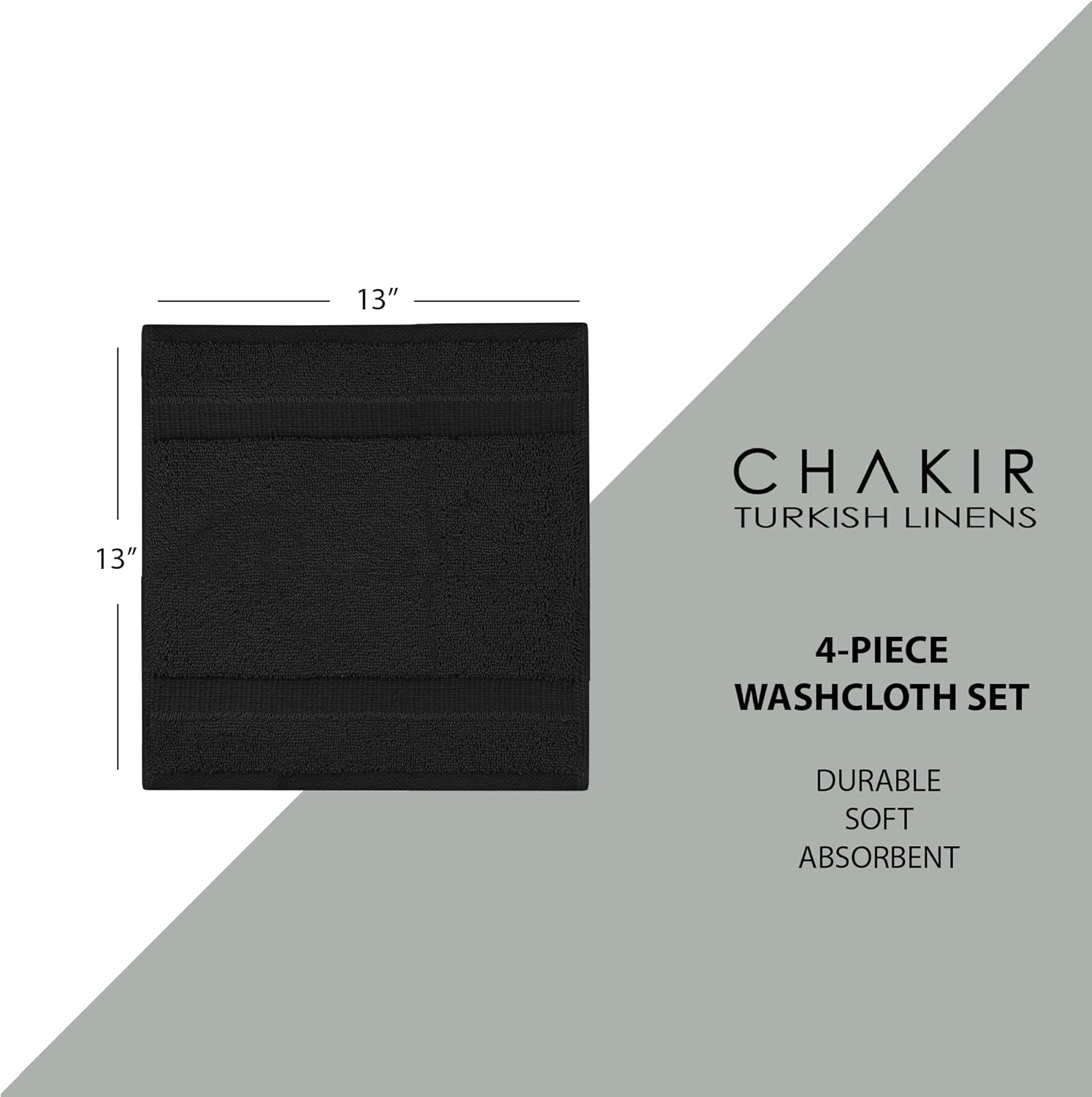 Chakir Turkish Linens | Hotel & Spa Quality 100% Cotton Premium Turkish Towels | Soft & Absorbent (4-Piece Washcloths, Black)