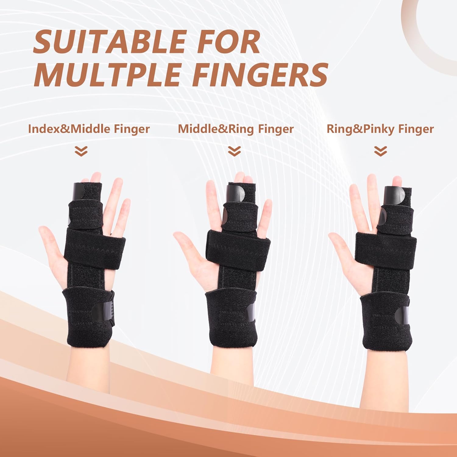 - TWO-FINGER PROTECTION IS BETTER: The two-finger splint can more effectively straighten and fix the entire knuckle, while protecting the fingers and hands.Unlike a single finger splint, you can fix your finger with the help of another finger. There are three different ways to wear: index&middle finger, middle&ring finger, ring&pinky finger. Finger Stabilizer will keep your fingers firmer and more comfortable.