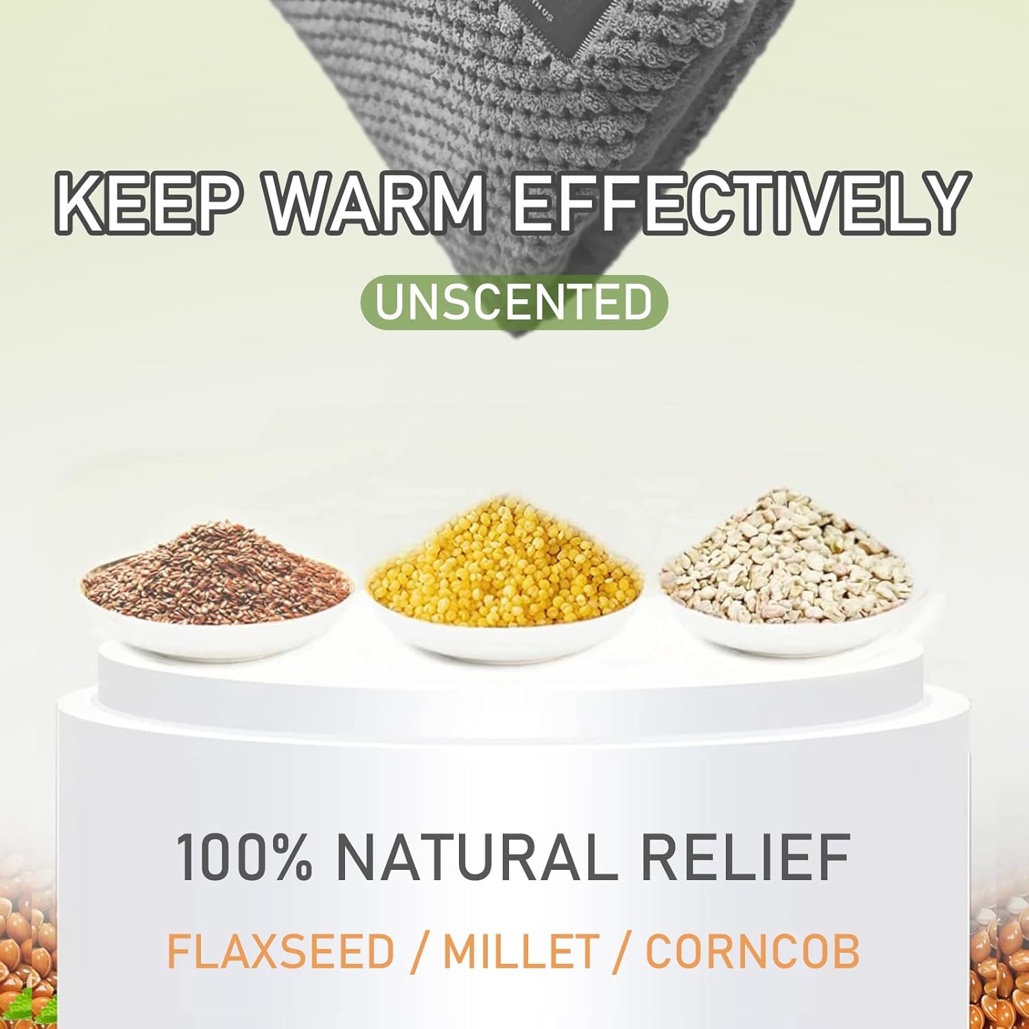 - KEEP WARM, FEEL GREAT: Our heat pack is generously filled with all-natural, unscented ingredients: millets, flaxseeds, clay beads and corncob. Together, they deliver long-lasting heat perfect for soothing cramps, sore muscles, and stress. It's also a fantastic aid for menstrual discomfort