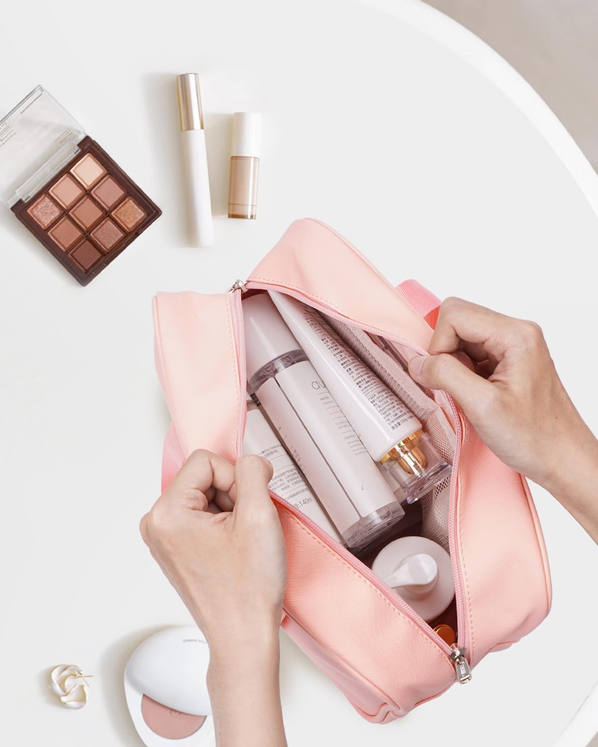 Full Size Toiletry Bag Women Large Cosmetic Bag Travel Makeup Bag Organizer Medicine Bag for Toiletries Essentials Accessories (Large, Pink)