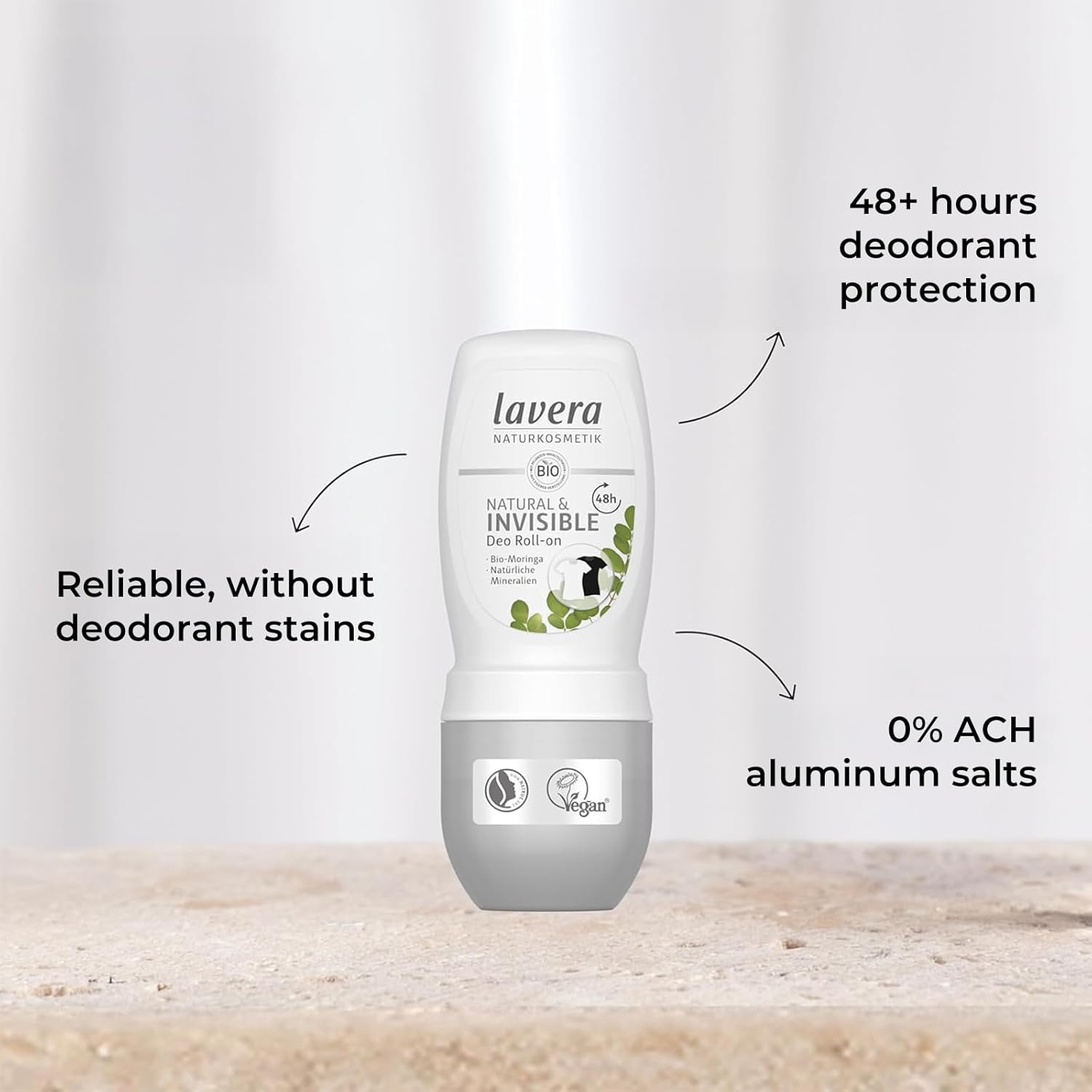 lavera Deo Roll-On NATURAL & INVISIBLE 48h - vegan - natural cosmetics - with organic moringa & natural minerals - no aluminium - climate neutral - 48h protection - dermatologically tested - 1.6 Fl Oz