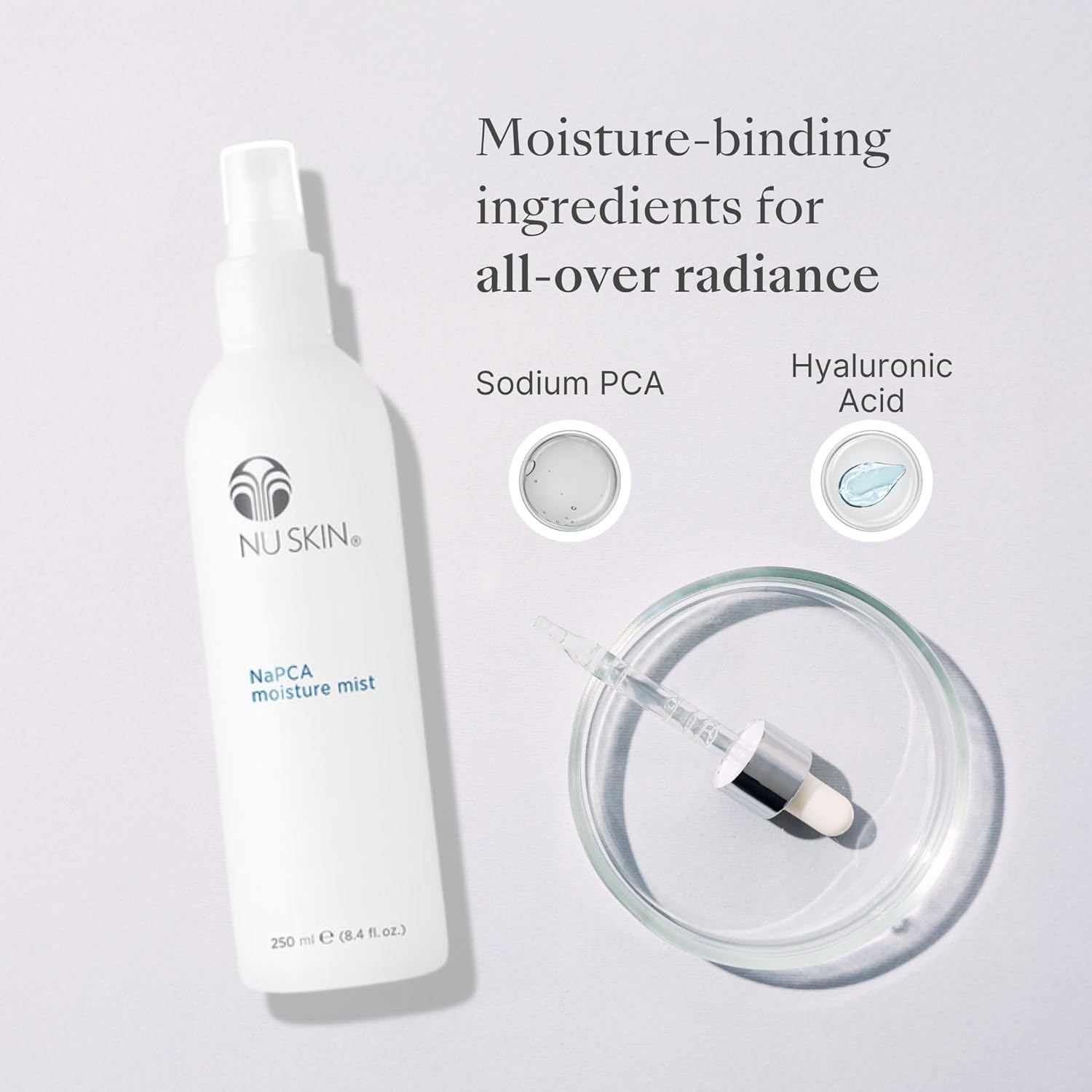 Nu Skin NaPCA Moisture Mist | Revitalizing Moisturizer & Cooling Mist with Hyaluronic Acid | Hydrating Spray for Face, Body & Hair | Sodium PCA for All Skin Types | 8 oz | 2 Pack