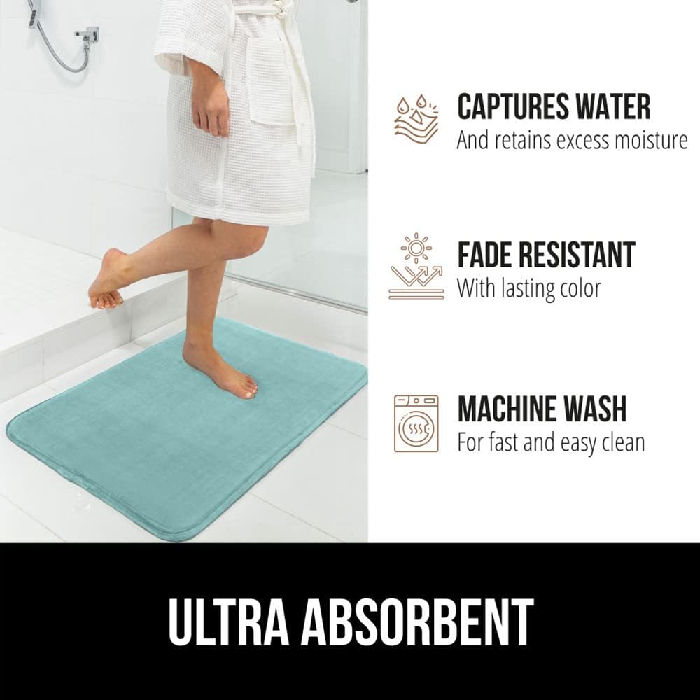 GORILLA GRIP Memory Foam Bath Mat, Soft Absorbent Velvet Bathroom Mats, Durable Dots on Underside, Machine Washable Bathmat, Carpet Rug Room Decor for Shower Tub Floor RV, 36x24 Rugs, Seablue