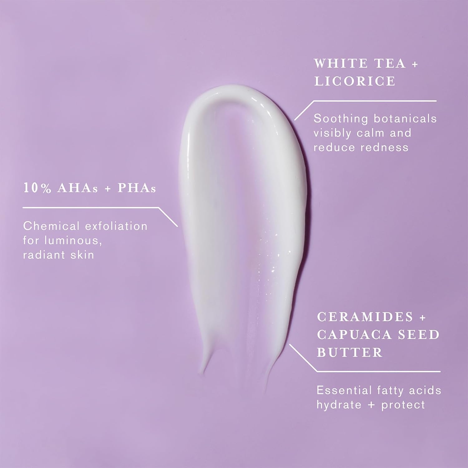 - FEATURED INGREDIENTS: Glycolic + Lactic Acids â Potent AHAs that exfoliate for smoother, softer skin. Ceramides â Prevent moisture loss and support a healthy skin barrier. Urea â Draws moisture from the air to hydrate skin. Gluconolactone â PHA that exfoliates, hydrates, and offers anti-aging benefits. Lactobionic Acid â A gentle PHA for hydration and exfoliation. Squalane â Restores and hydrates. Cupuacu Seed Butter â Moisturizes and protects with polyphenols. Anti-Redness Complex â Reduces redness and calms skin. Willow Bark â Exfoliates deeply as a natural BHA.