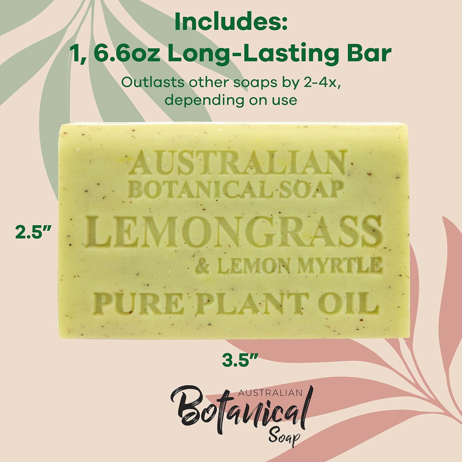 Australian Botanical Soap Lemongrass and Lemon Myrtle 6.6 oz Triple Milled Luxury Soap Bar Enriched with Shea Butter and Natural Oils, Pack of 1