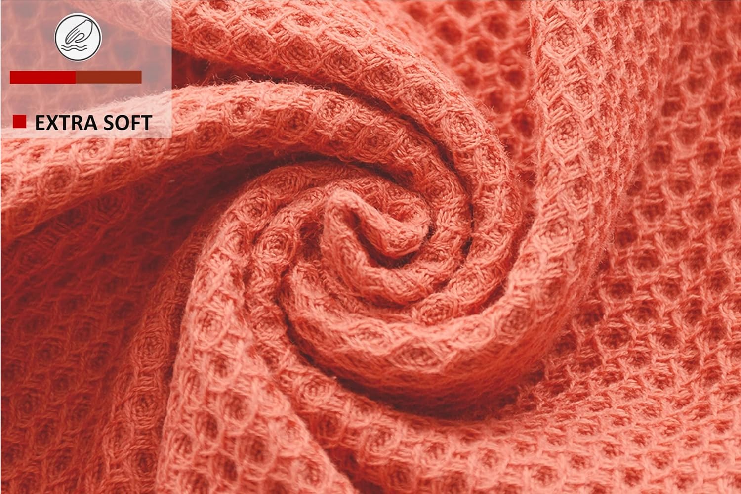 Kitchen Towels 100% Cotton Waffle Weave Dish Towel for Cleaning Drying Dishes Extra Absorbent and Soft, Dish Cloth,13 x 28 in(Reddish Orange-4 Pack)