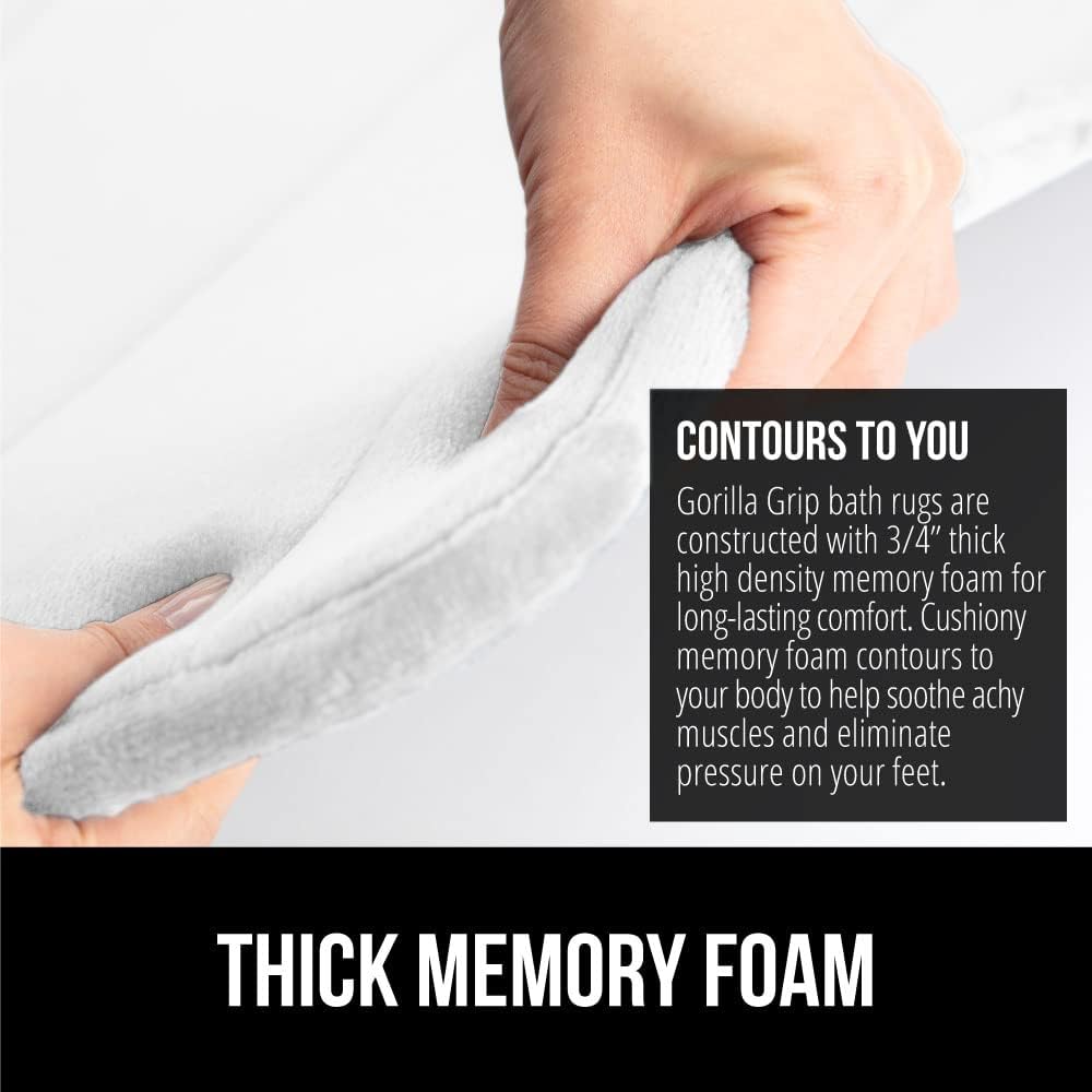 GORILLA GRIP Memory Foam Bath Mat, Soft Absorbent US Designed Bathroom Rug, Gripping Dots Machine Washable Bathmat, Cushioned Floor Mats, Shower Sink Rugs Room Décor Accessories, 60x24 White