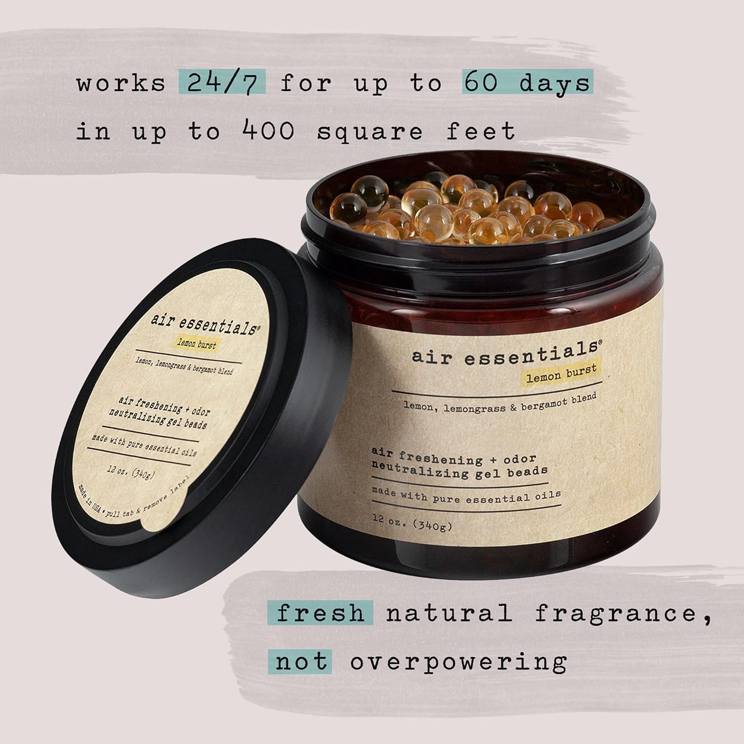 Air Essentials Air Freshener & Odor Neutralizer Gel Beads - 12 oz, Pack of 2 - Odor Eliminator - Made with Pure Essential Oils - Lemon Burst Scent