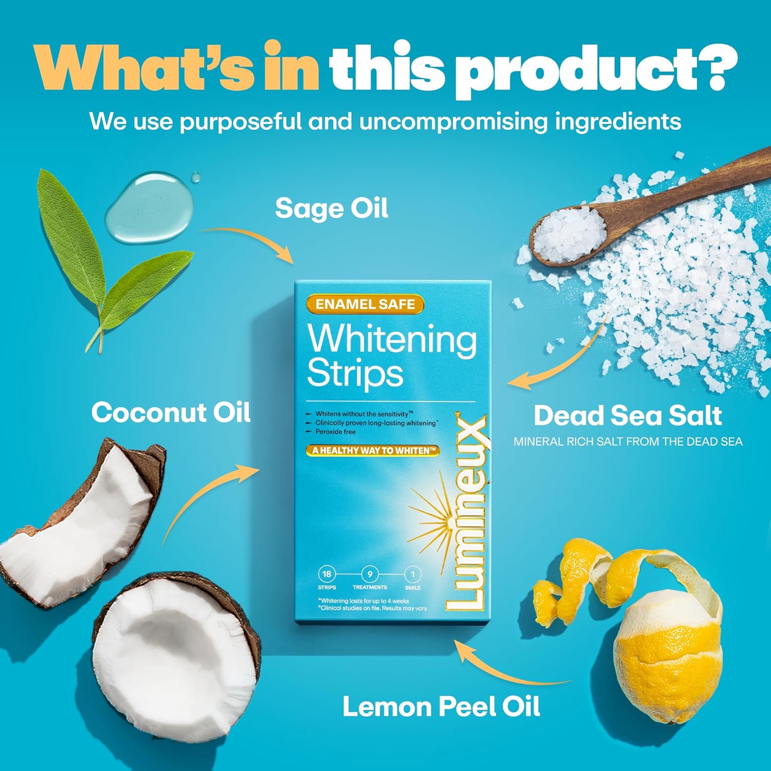 Lumineux Teeth Whitening Strips 9 Treatments – Peroxide Free - Enamel Safe for Whiter Teeth - Whitening Without The Sensitivity - Dentist Formulated - Sensitivity Free