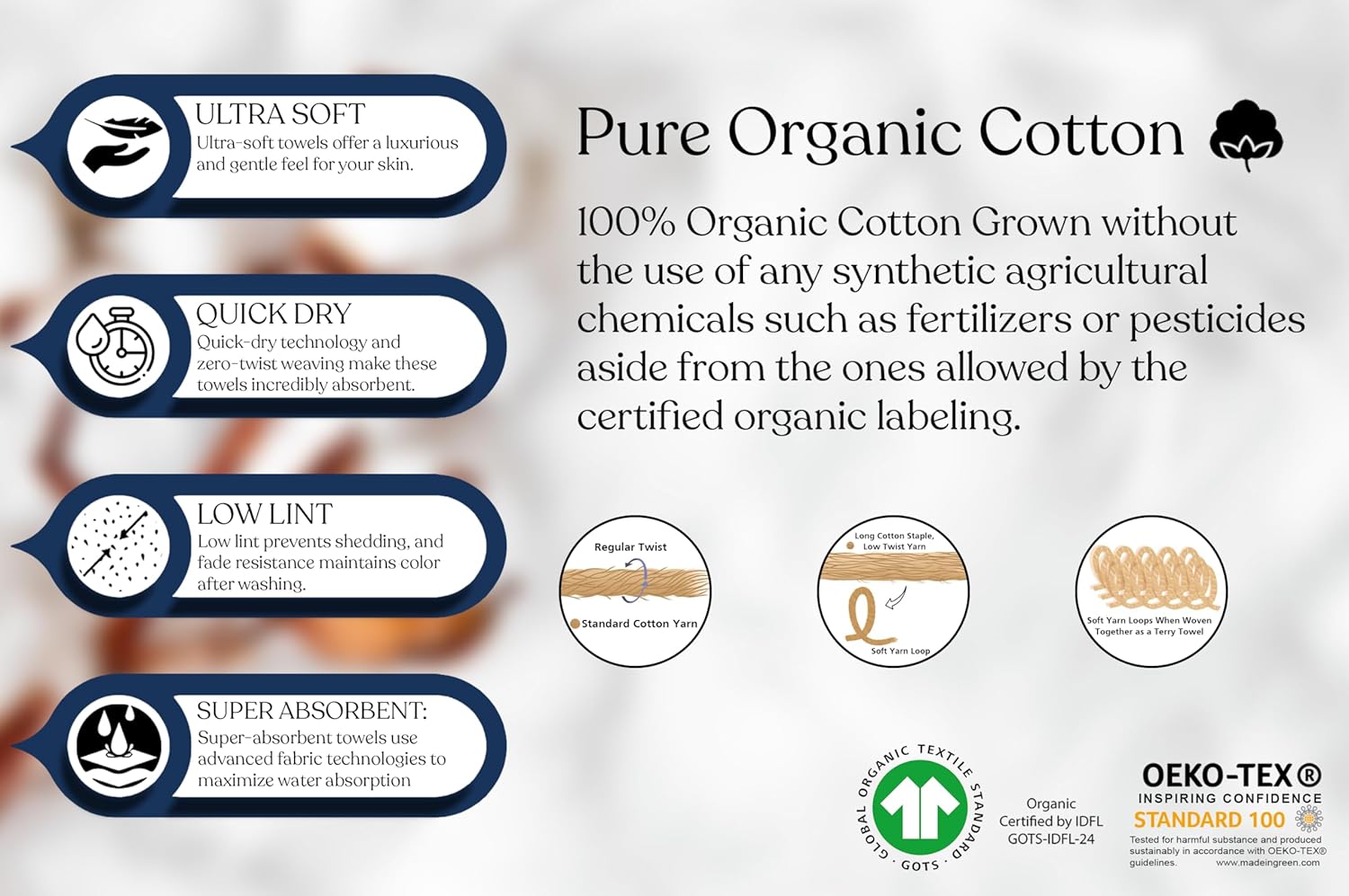 - GOTS CERTIFIED & OEKO-TEX GREEN CERTIFIED: This product meets the strict requirements of the Global Organic Textile Standard (GOTS), the worldwide leading processing standard for organic textiles to ensure a healthier home for you and a better planet for all. When you shop for cotton made without harmful chemicals or pesticides, you're contributing to cleaner soil and waterways.Tested for harmful substances and products substantially in accordance with Oeko Tex guidelines.