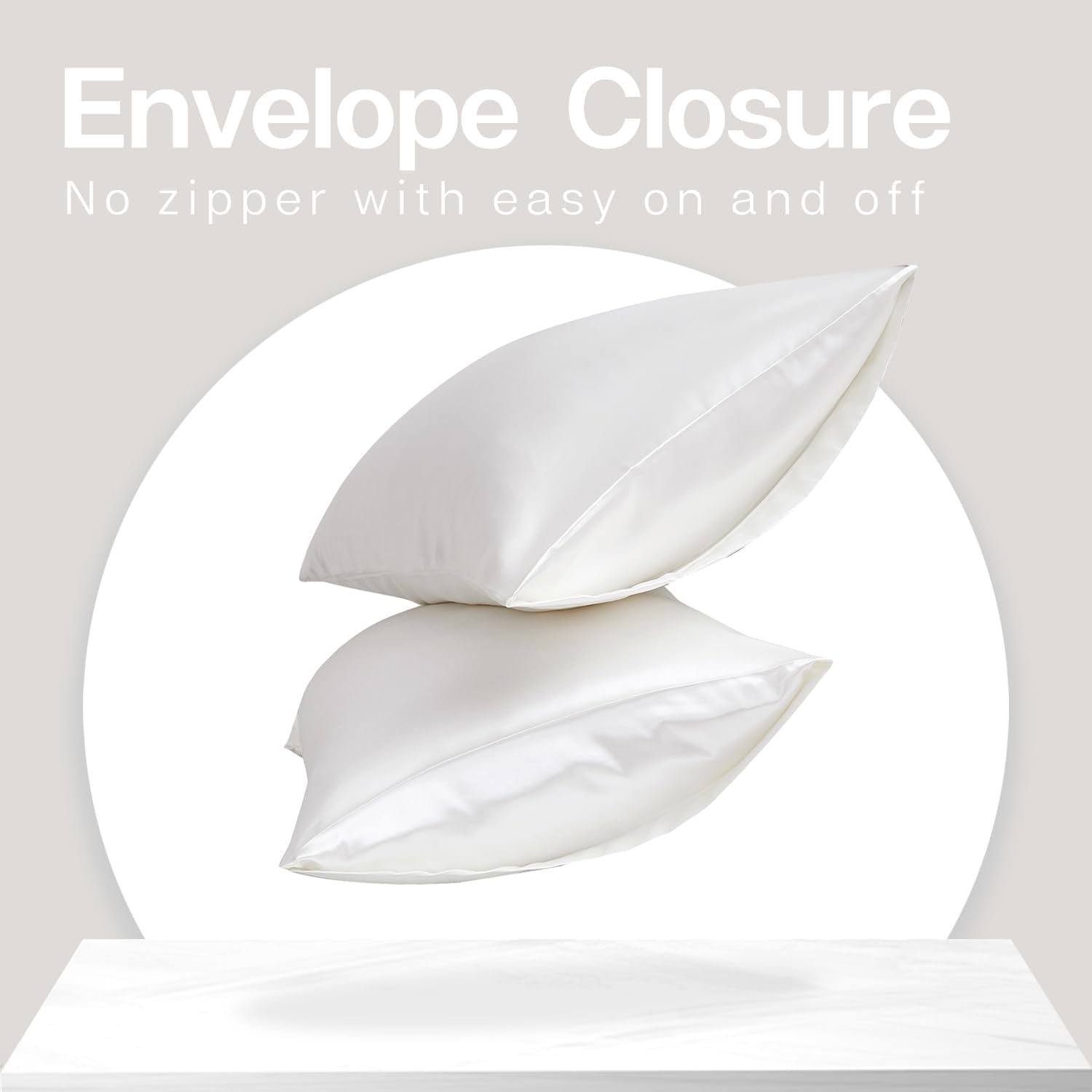 MR&HM Satin Pillowcase for Hair and Skin, Silk Satin Pillowcase 2 Pack, King Size Pillow Cases Set of 2, Silky Pillow Cover with Envelope Closure (20x36, Ivory)