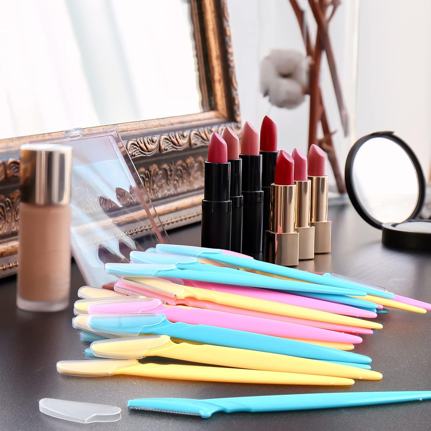 - Package includes: 60pcs eyebrow razors; Colors: pink, sky blue, yellow
