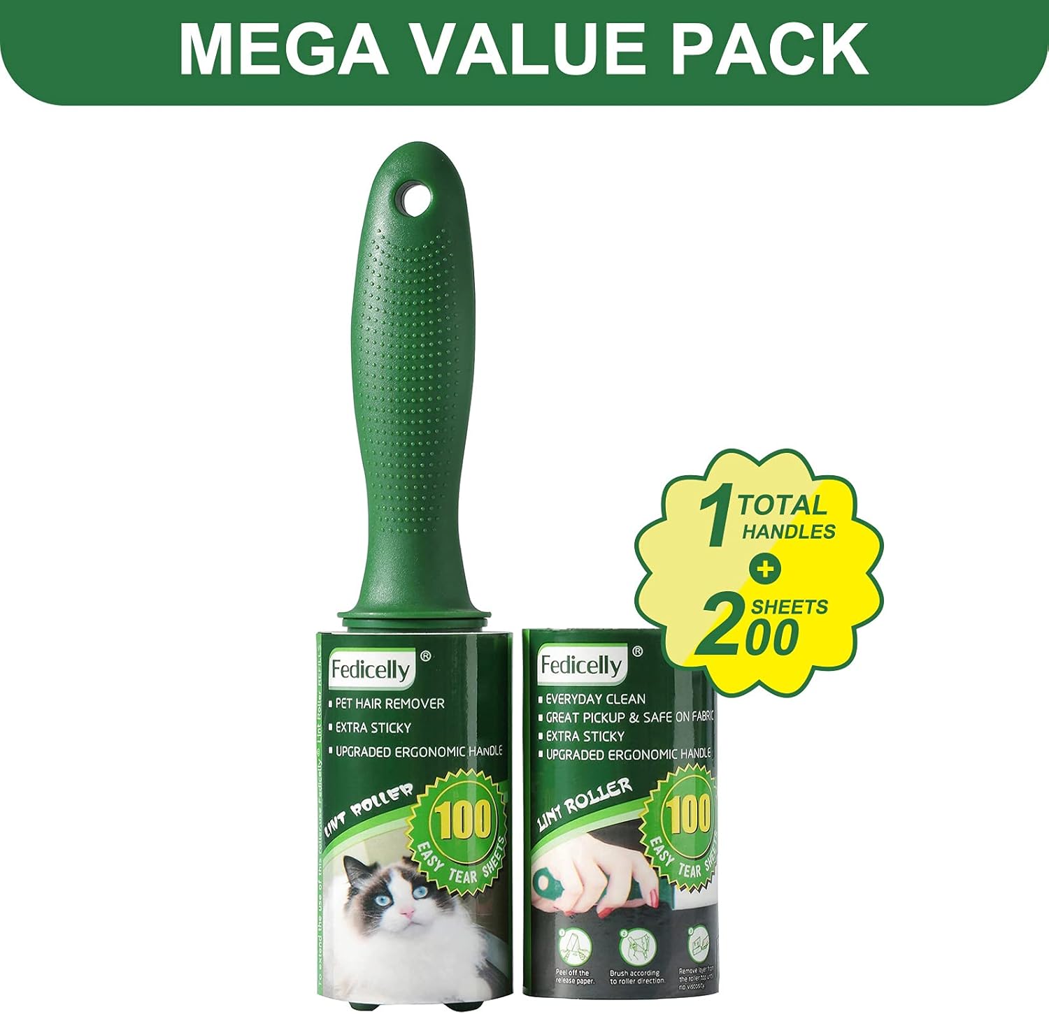 - MEGA VALUE SET 200 SHEETS: This pet lint roller come with 1 upgraded ergonomic handles and 2 lint roller refills, each lint roller refill has 100 Sheets, which is 1.5-2 times that of other similar products, that means youâll have a total of 200 sticky sheets in stock. Such economical value pack can be long lasting to meet your everyday clean needs. Better quality, higher cost performance.