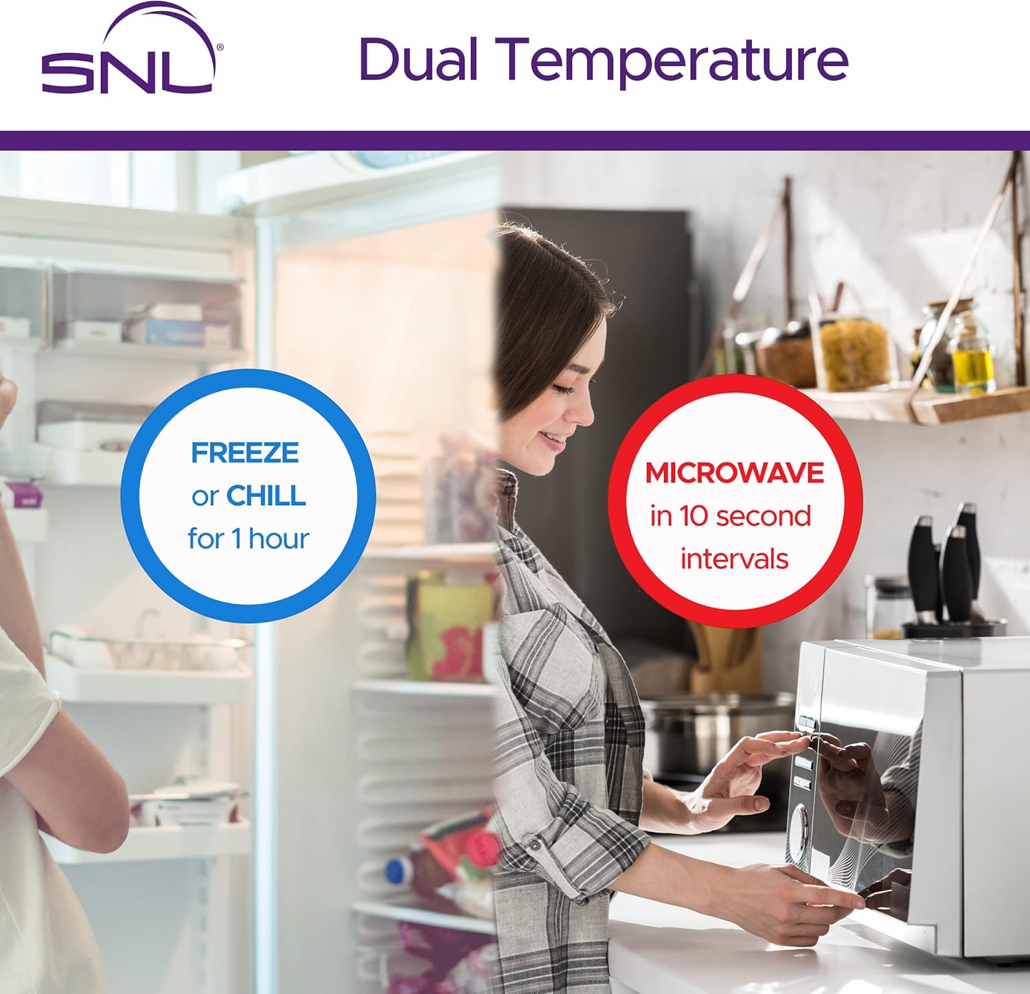 - HOT OR COLD! Can be used either way. Place in your freezer for about an hour, and use for up to 15 minutes of cold compress therapy; or place in your microwave for 10 second intervals ONLY until the pack has reached he desired warming temperature, ditribute the heat by squeezing the gel around, and apply to the desired area. Caution! Always apply the fabric backing to the skin or use the enclosed wrap sleeve, never apply the plastic side directly to your skin.