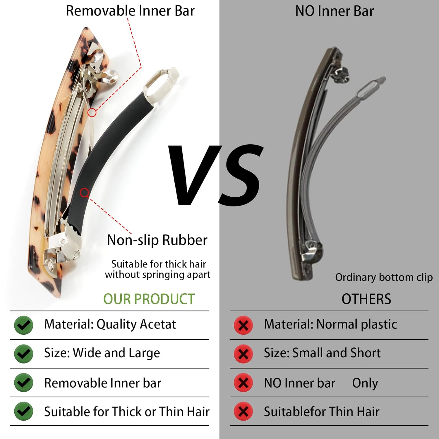 - 【CHIC DESIGN & MATERIAL】 Classic tortoise shell pattern compliments your daily outfit and special occasions as well,make you hair style charmer and elegant. The springs are made of high quality acrylic that endures daily wear. And the anti-slip design makes it hold your hair in place.
