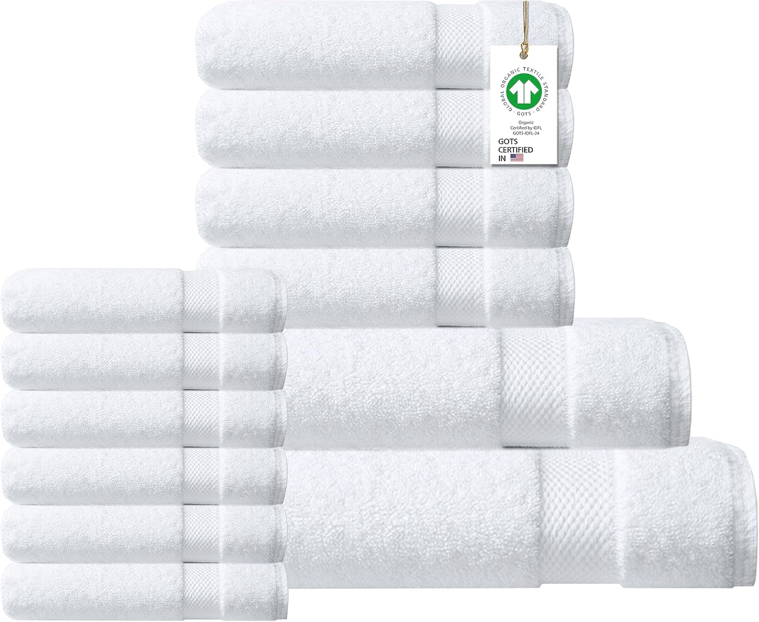Delara 100% Organic Cotton Towels 650 GSM Plush Feather Touch Quick Dry Towel, 12-Piece Towel Set GOTS Certified, Oeko-Tex Green Certified, 1 Bath Towel, 1 Bath Sheet, 4 Hand Towels & 6 Wash Cloths