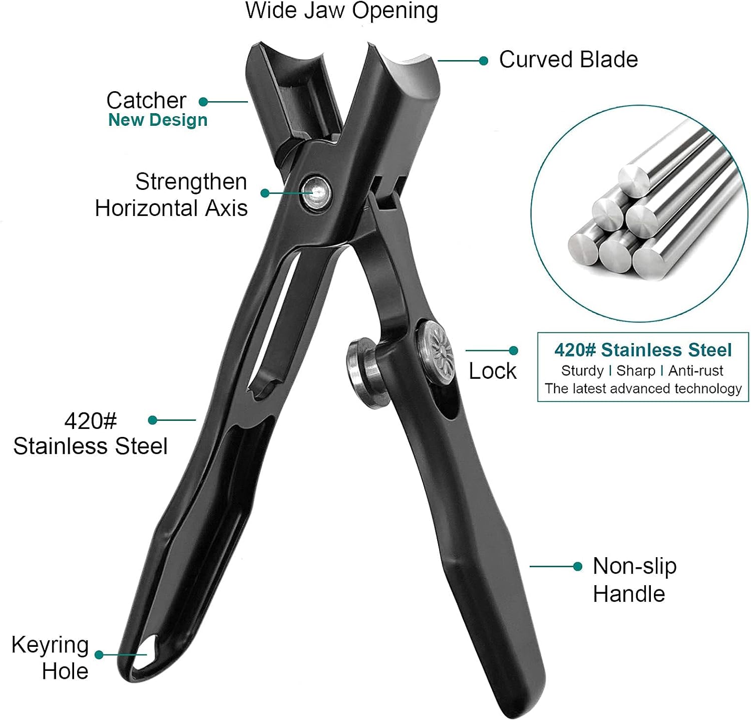 Toe Nail Clippers for Thick Nails for Seniors, Wide Jaw Opening Ultra Sharp No Splash Nail Clippers for Men Heavy Duty Stainless Steel (Black)