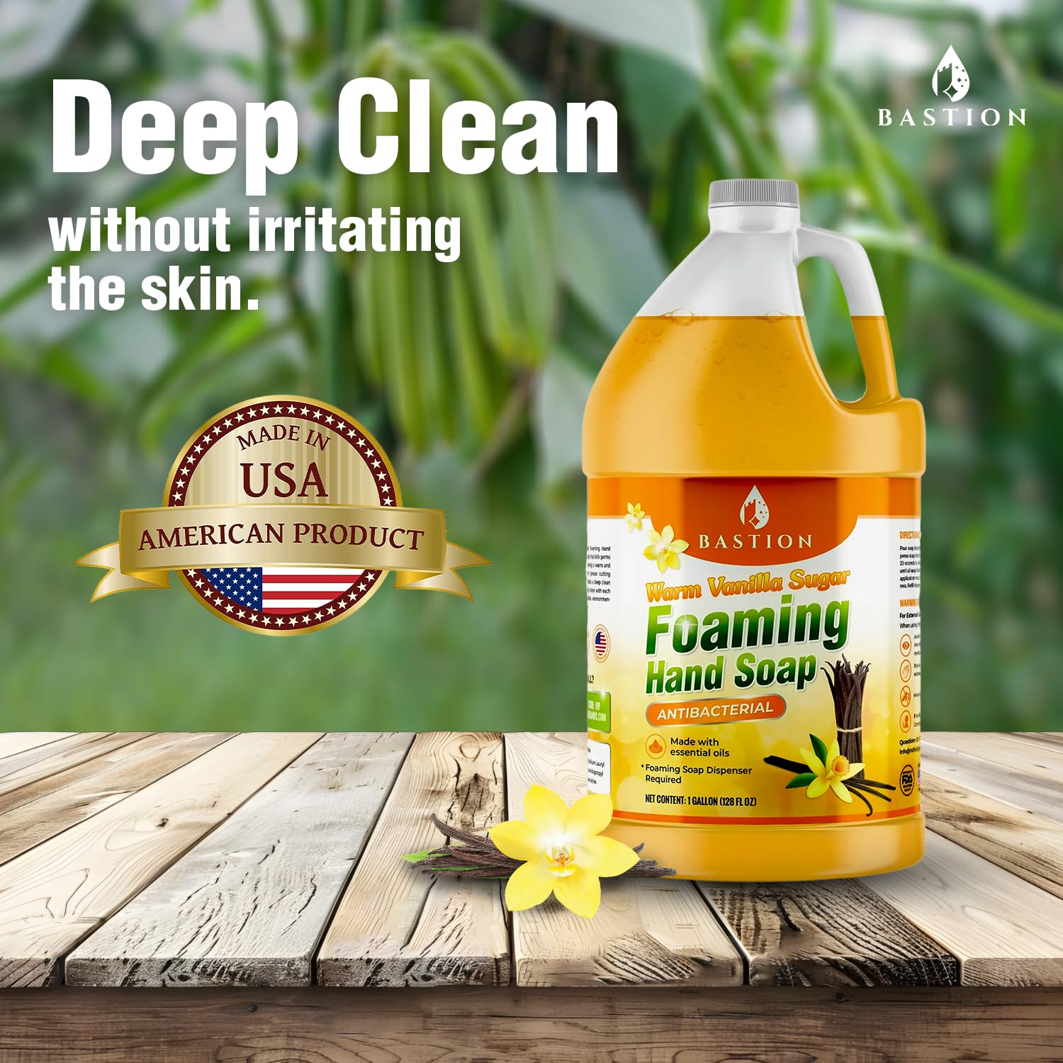 Bastion Foaming Hand Soap - Foam Hand Wash Refill for Bath And Body Works, Dial, Method, Michel, JR Watkins, Dove - Warm Vanilla Sugar w/Essential Oils Bulk Bottle 4 X Gallons (512 0z.)