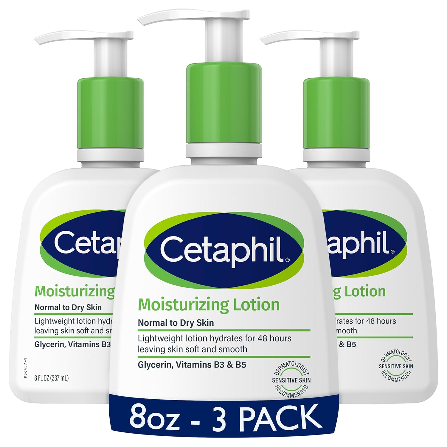 Cetaphil Face & Body Moisturizer, Hydrating Moisturizing Lotion for All Skin Types, Suitable for Sensitive Skin, NEW 8 oz Pack of 3, Fragrance Free, Hypoallergenic, Non-Comedogenic