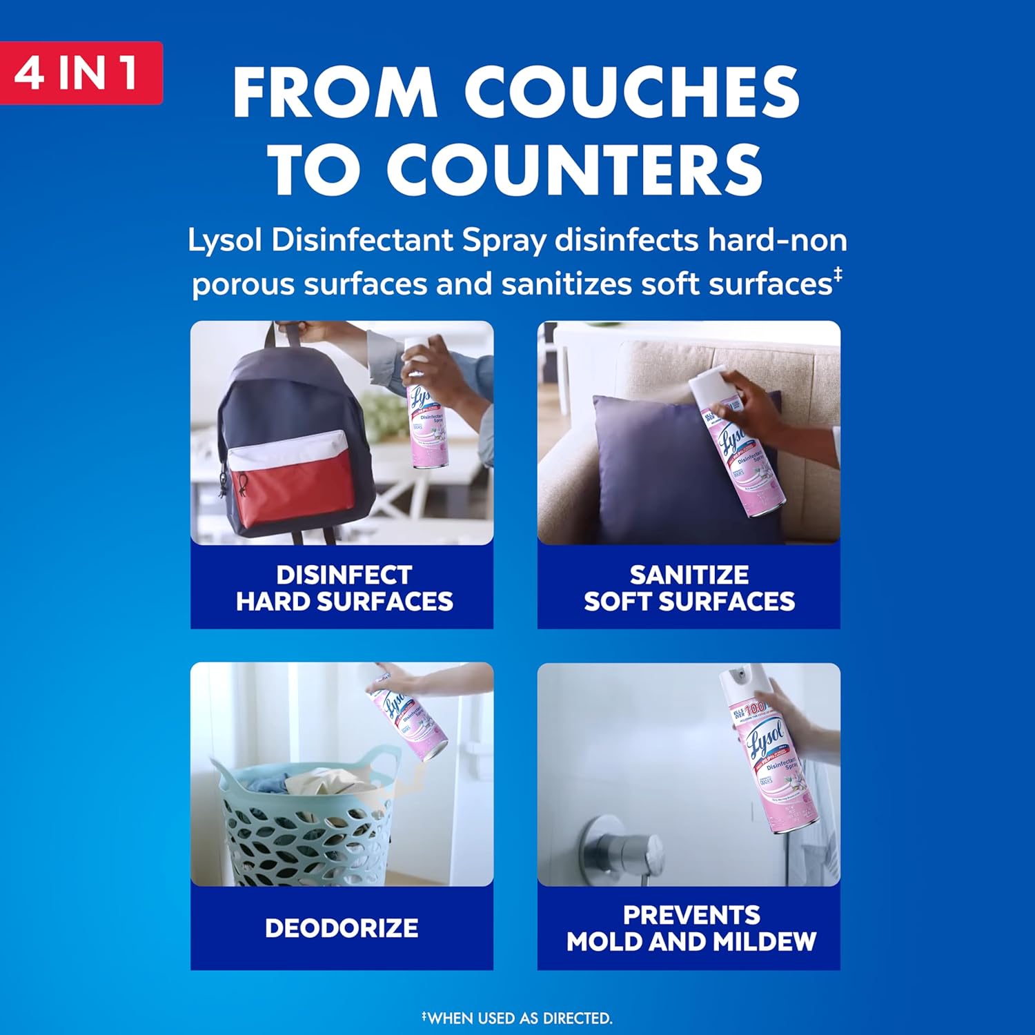 - ANTI-BACTERIAL ROOM SPRAY: Lysol Disinfectant Spray kills over 100 illness causing germs in high-touch areas. This multi-purpose spray tackles germs in kitchens, bathrooms, and living rooms, to protect loved ones from the spread of cold and flu viruses.