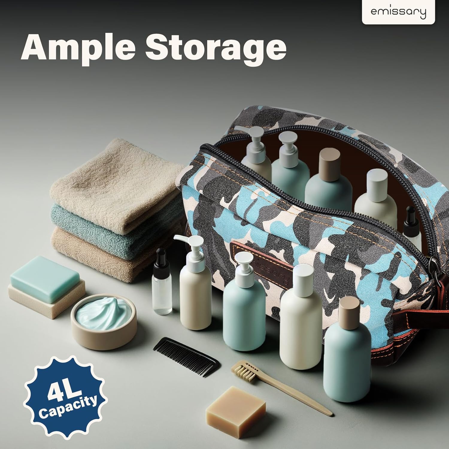 emissary Men's Toiletry Bag, Leather and Canvas Travel Toiletry Bag, Dopp Kit for Men,Bathroom Bag Men's Shaving Kit, Travel Kit Small Bags for Men, Shaving Bag for Travel (Camo-Blue)