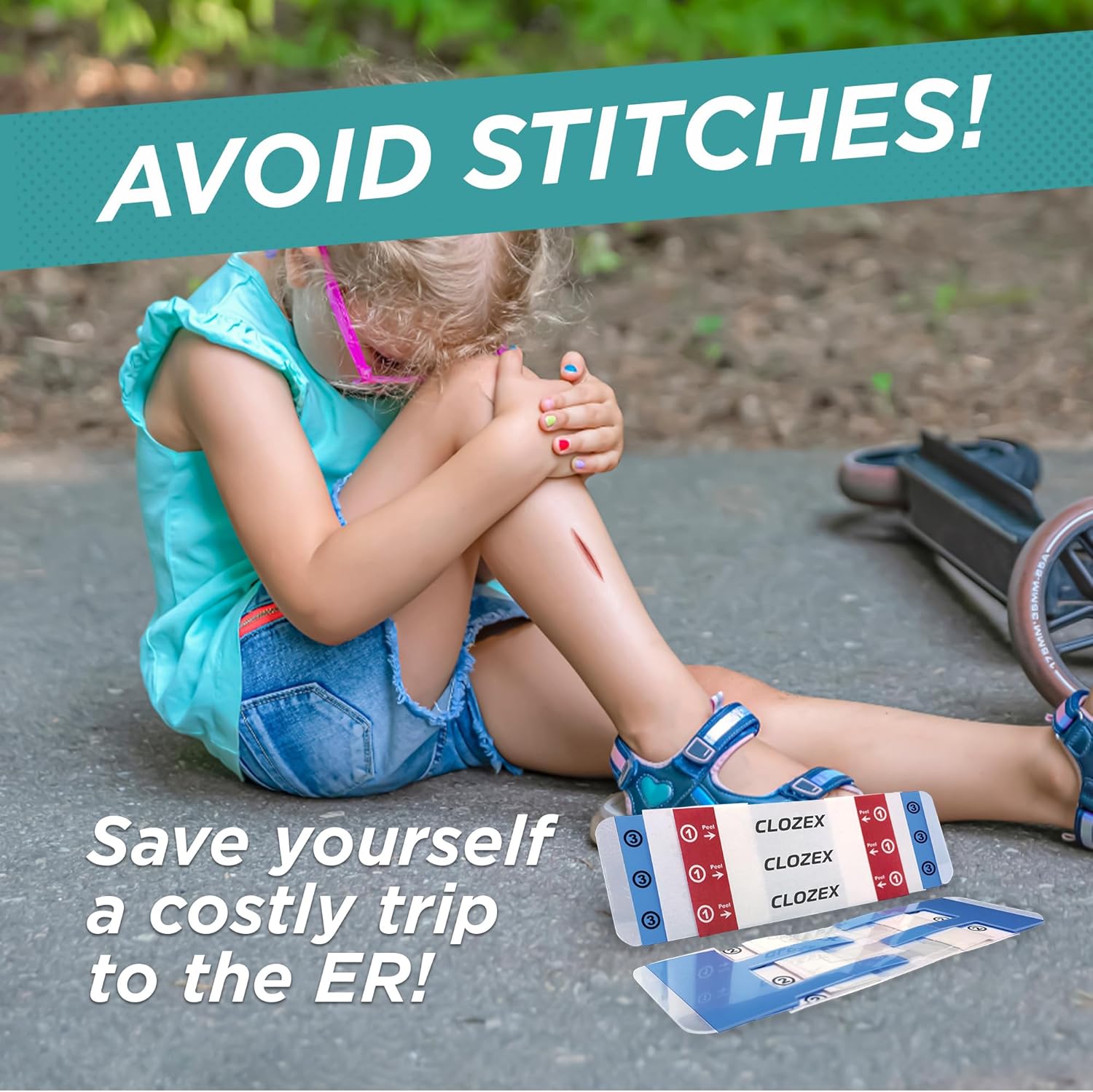 - Be prepared for lifeâs unexpected moments: Accidents can happen anywhere, any time. Clozex Closures provide a non-invasive and painless alternative to traditional stitches for treating small cuts and lacerations. Whether youâre at home, work, engaging in sports, or enjoying outdoor activities like hiking, camping, fishing, hunting, or biking, our closures ensure youâre always ready to address minor injuries