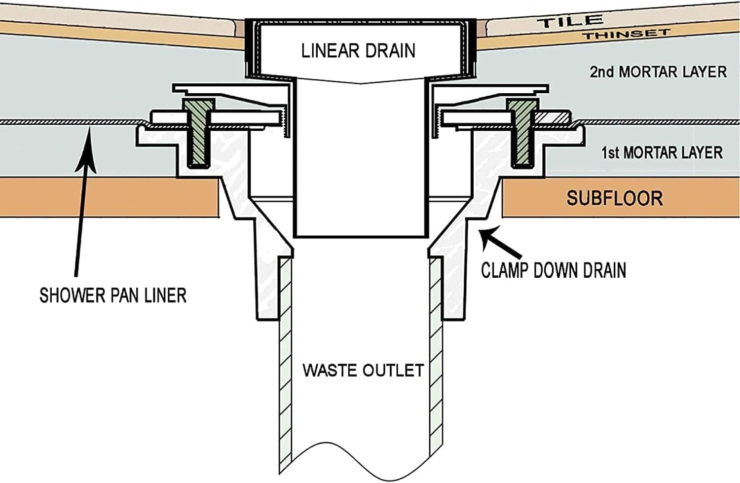 - 【Square Design】4 inch Width,2 inch High Flow Outlet(NON-SCREW INTO DRAIN RISER TYPE). Fits US NO HUB Drain Base System. 2" PVC No-hub Shower Drain Base included