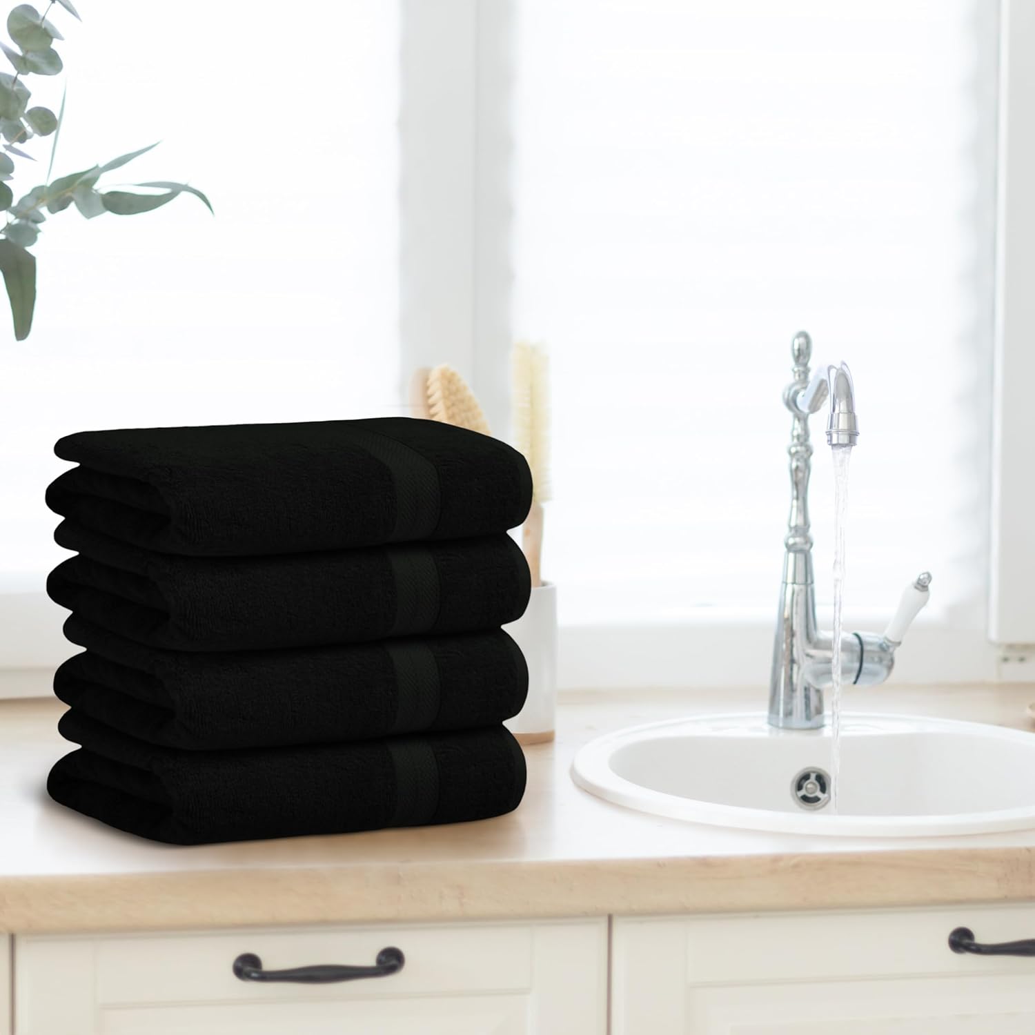 Avalon Towels Black Bath Towels Set of 4 pcs (27x54 inches), 100% Cotton Towel Absorbent and Quick Dry Black Towels for Bathroom, Super Soft and Perfect for Daily Use