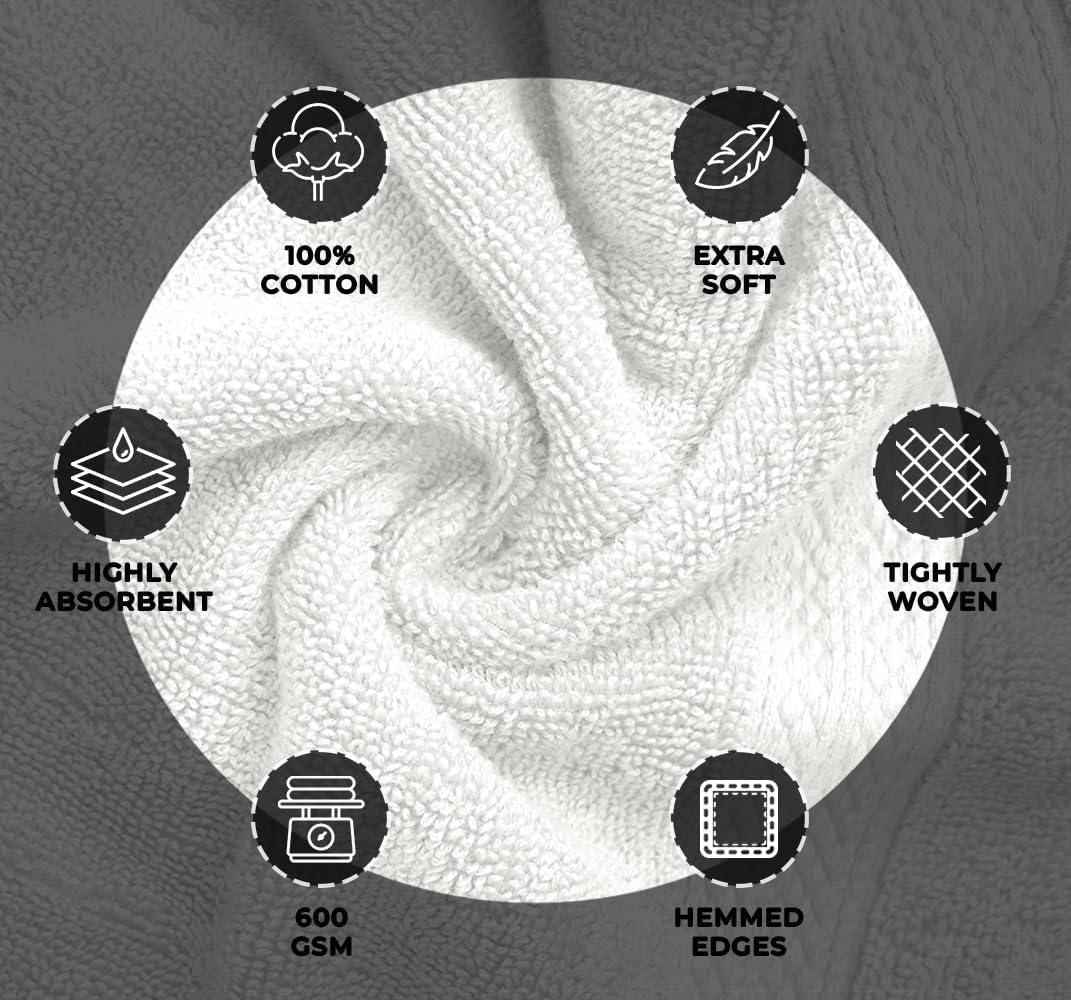 - Premium Quality Cotton – Crafted from 100% ring-spun cotton, these towels are durable, soft to the touch, and designed to maintain their strength and comfort even after multiple washes.