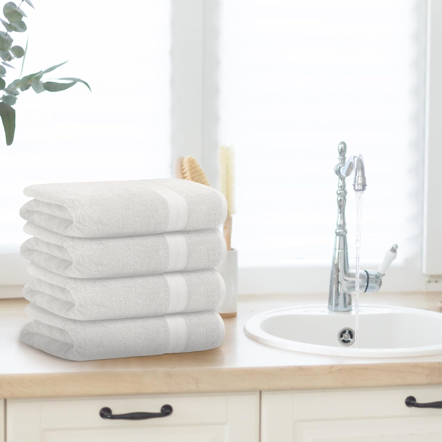 Avalon Towels White Bath Towels Set of 4 pcs (27x54 inches), 100% Cotton Towel Absorbent and Quick Dry White Towels for Bathroom, Super Soft and Perfect for Daily Use