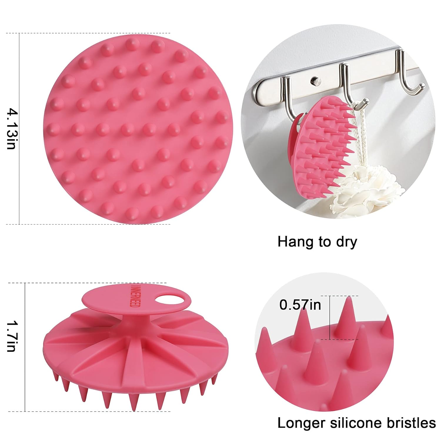 INNERNEED Scalp Massager Shampoo Brush, Wet & Dry Manual Scalp Care Head Scrubber Hair Washing, Soft Silicone Bristles, for Hair Growth, Dandruff Removal, Comfortable for All Hair Types (Pink)